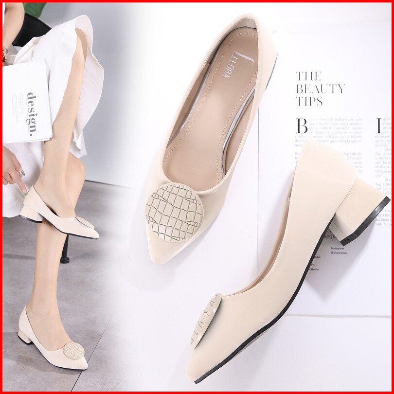 Ellora 1861-a0b Sepatu Kerja Wanita Hak Tahu Chunky Heels Import