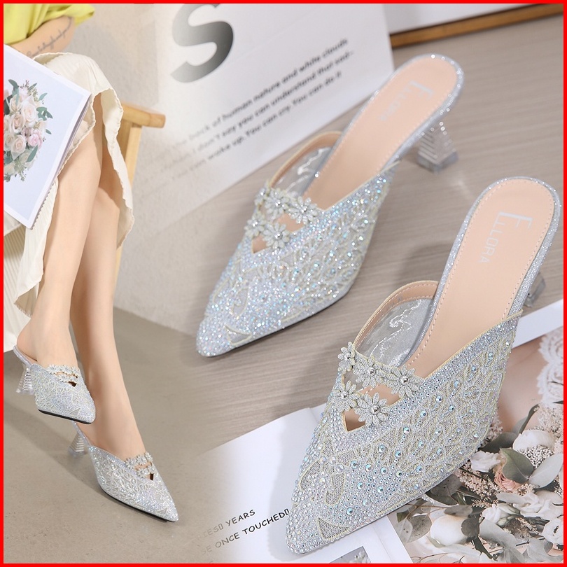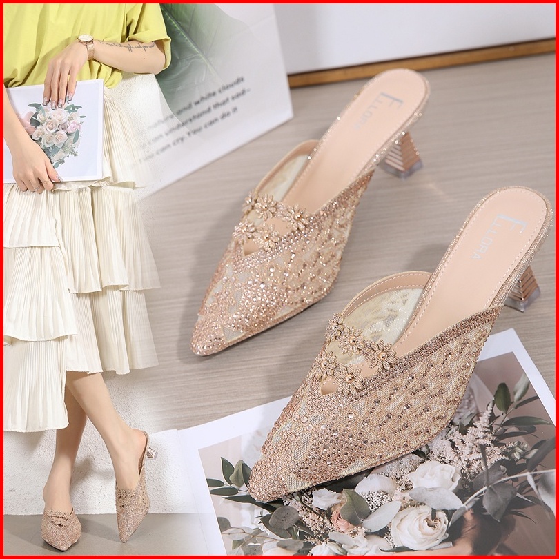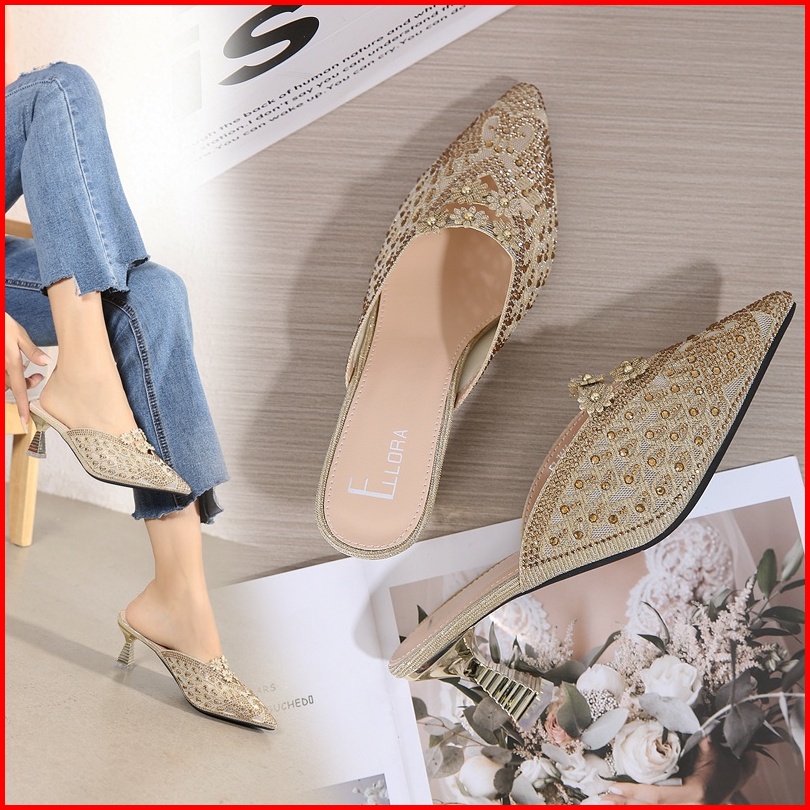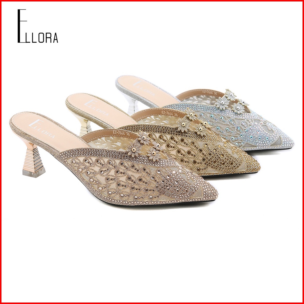 Ellora Ez-7644 Sandal Heels Wanita Pesta Mules Import 7cm