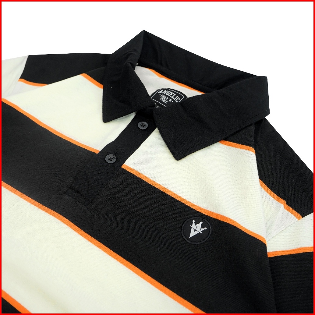 Angelic Holynpure - Polo Shirt Rugby Pendek Salur Cotton 24s - 3 Warna