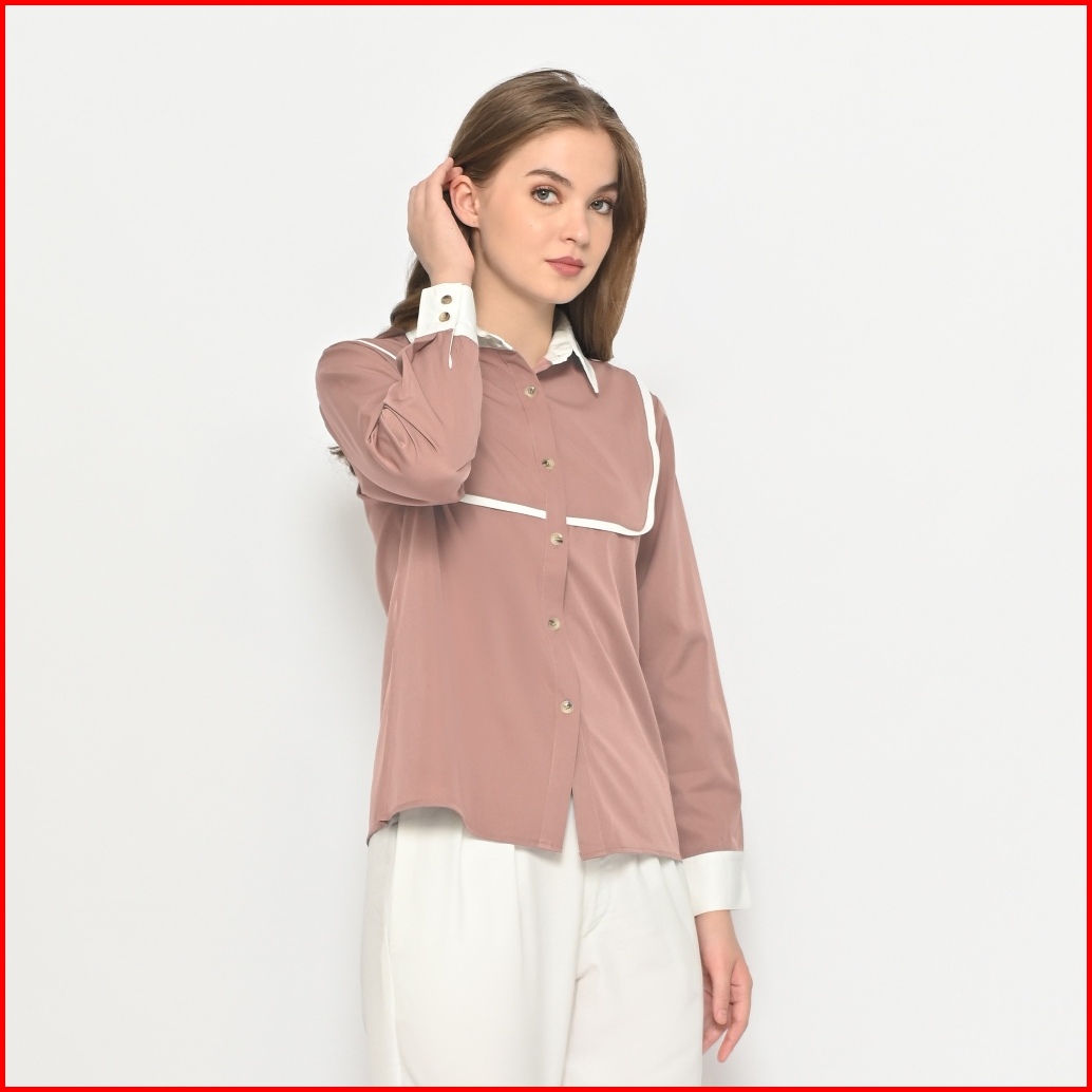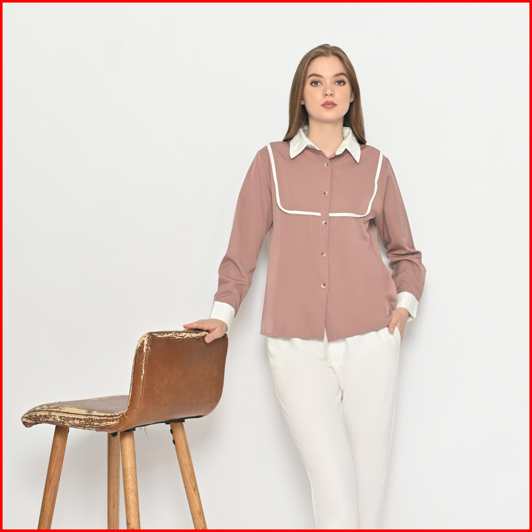 Queentin Kemeja Wanita Kombinasi 0199 Polyester Primadonna Polos Lengan Panjang