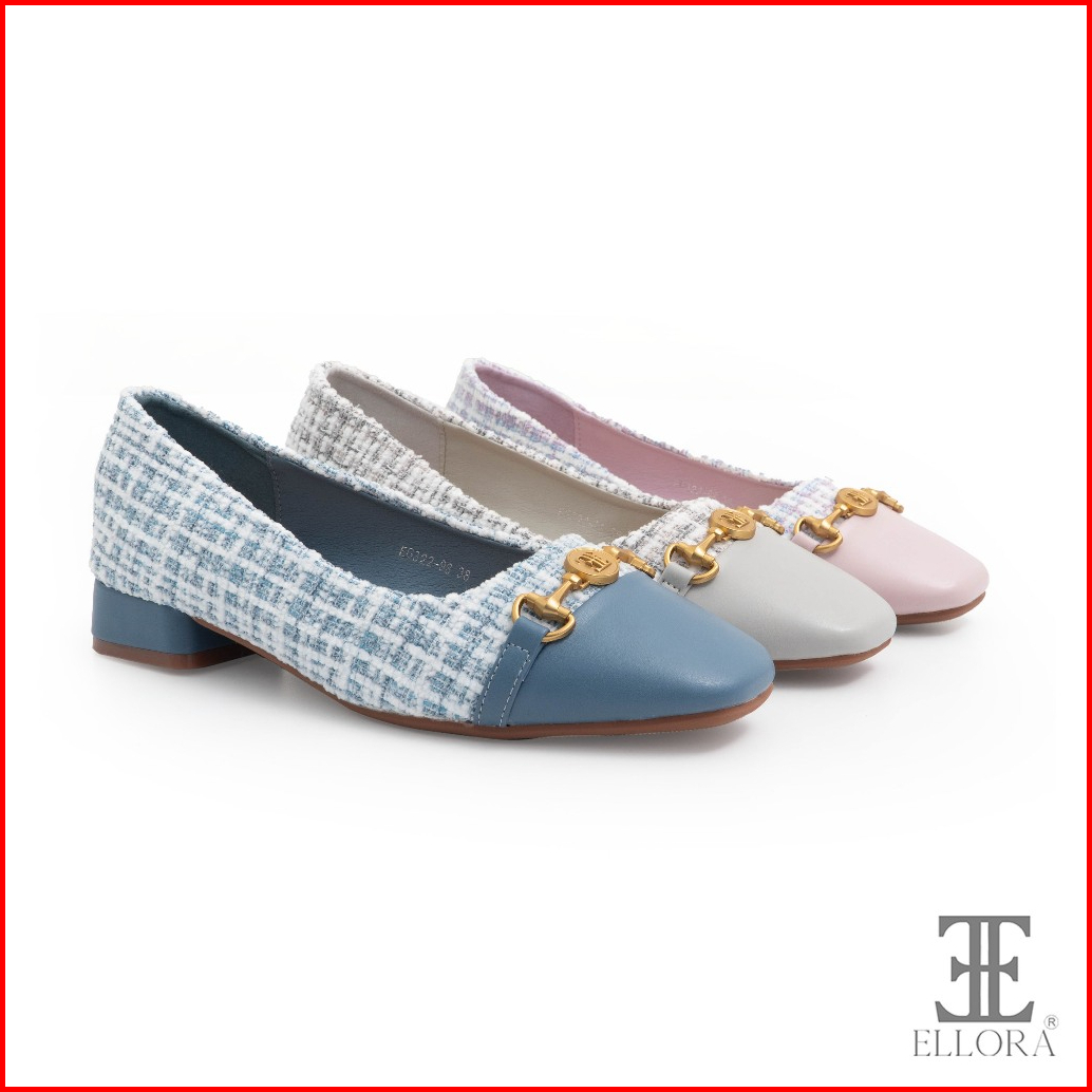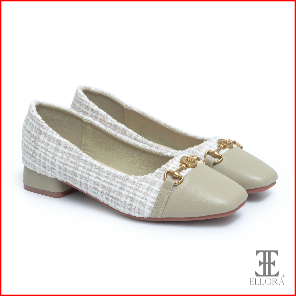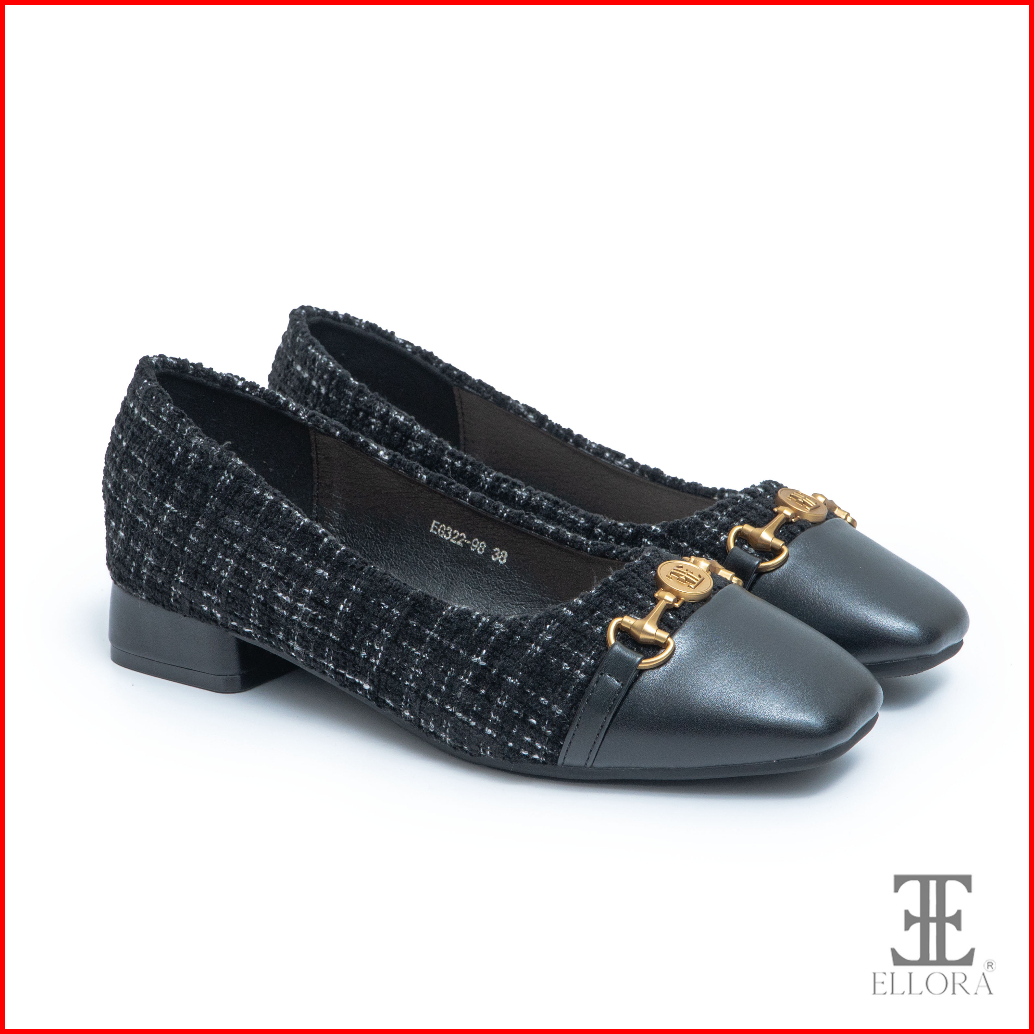 Ellora Eg 322-98 Sepatu Pantofel Wanita Hak Chunky Heels 2.5cm Bahan Tweed