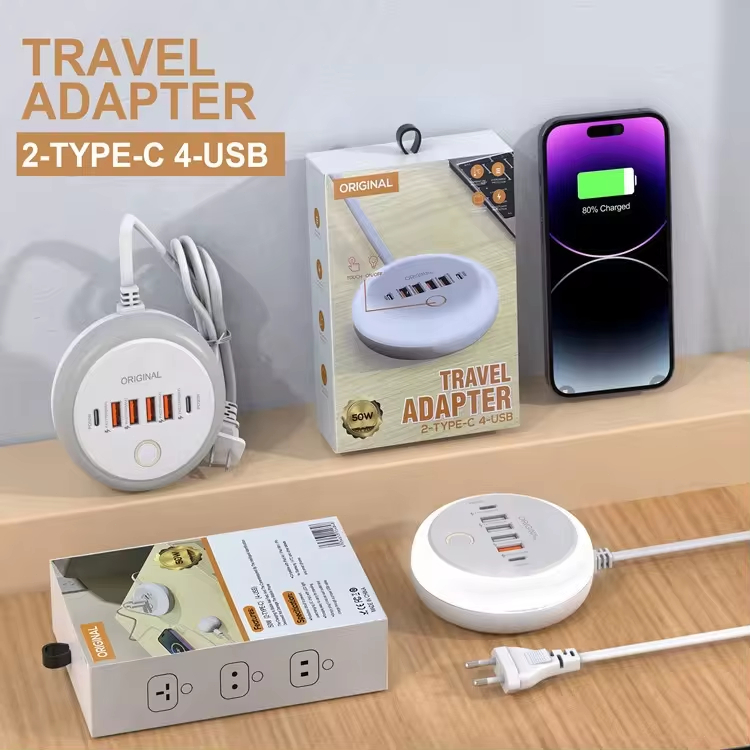 50W Fast Charger 2 Type-C + 4 USB USB Adaptor Power Kabel USB Hub 1 Meter Original Quick Charger Power Socket Port USB T