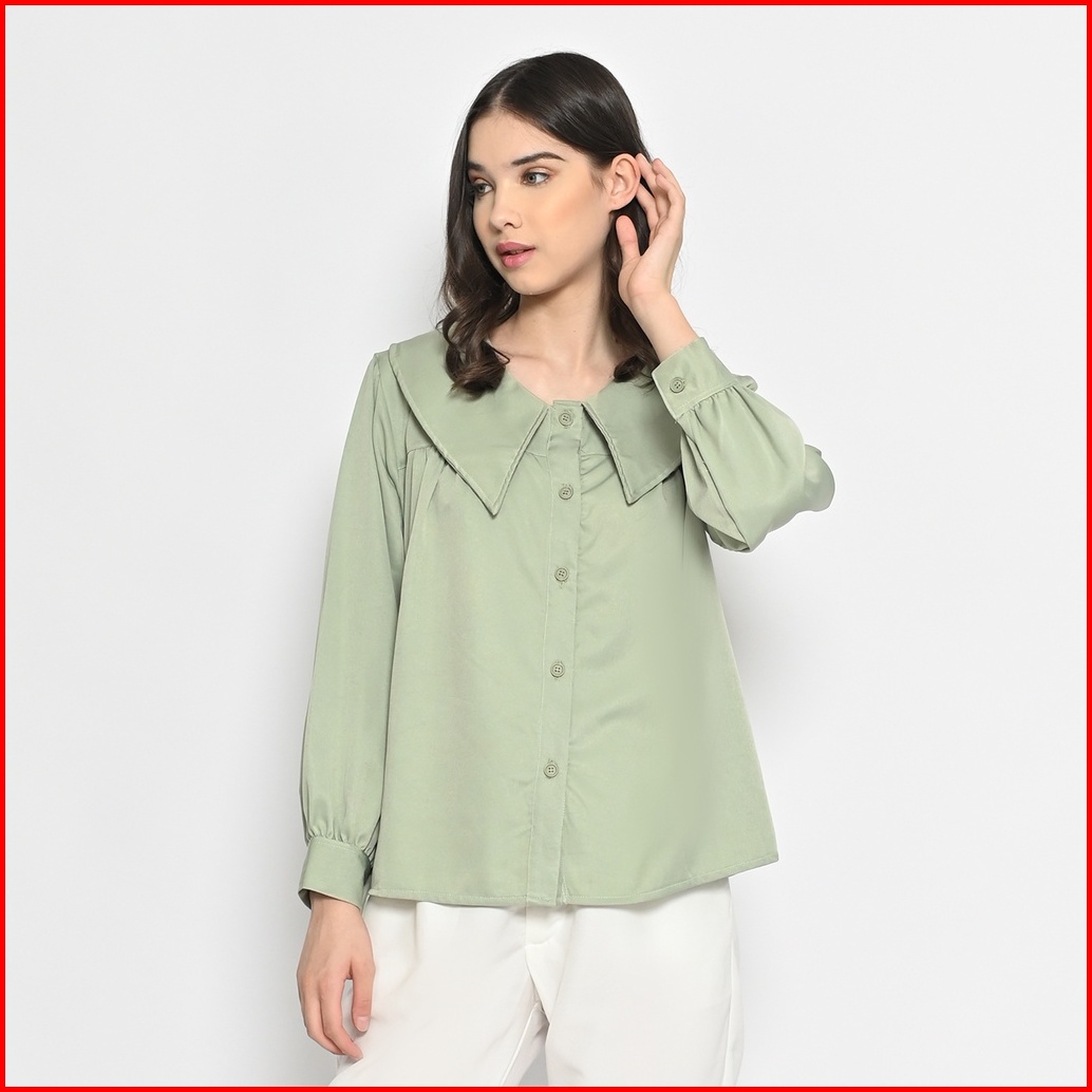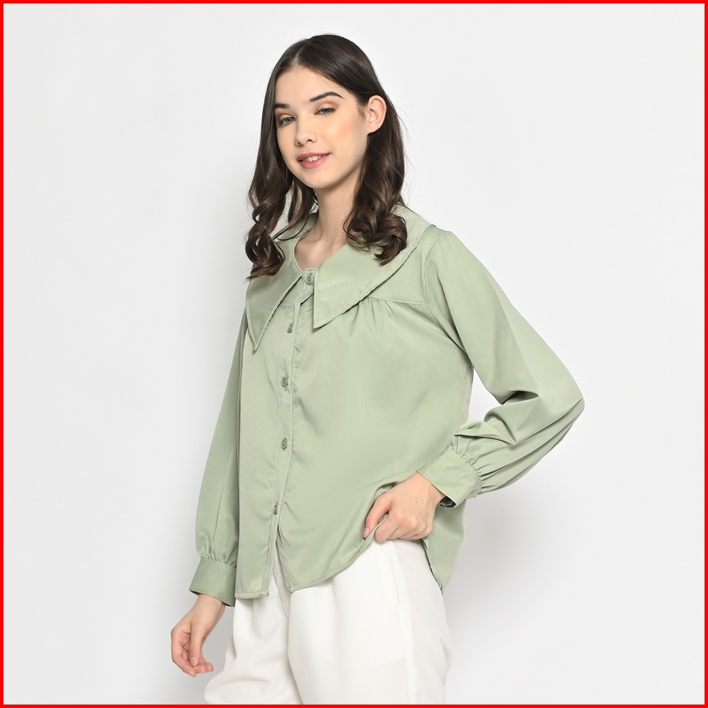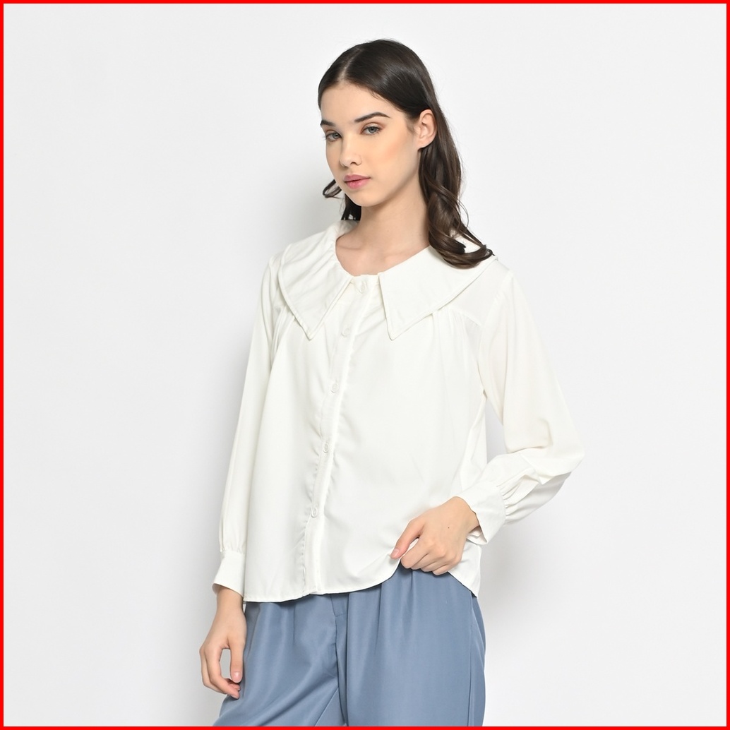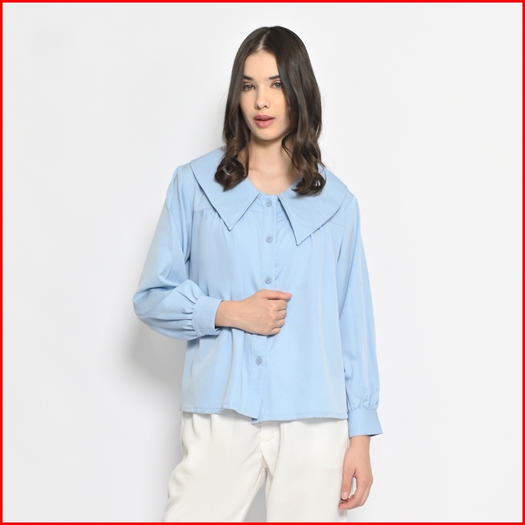 Queentin Kemeja Casual Wanita 0361 Katun Donna Polos Lengan Panjang Korean Style