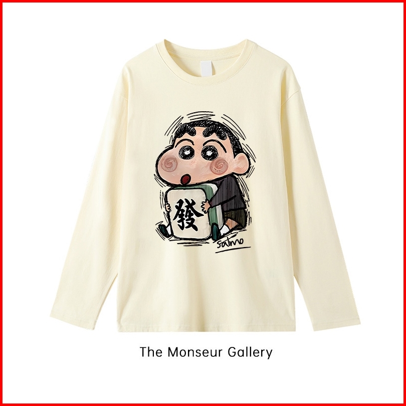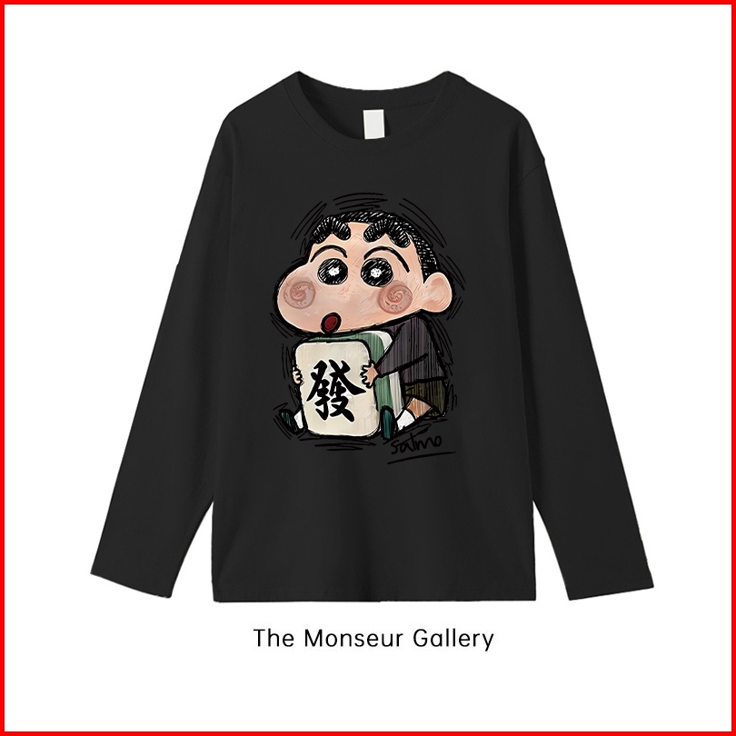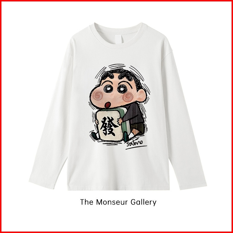 The Monseur Gallery Baju Kaos Wanita Lengan Panjang Kaos Oversize Wanita Baju Atasan Wanita Get Rich Crayon Shin-chan Ka