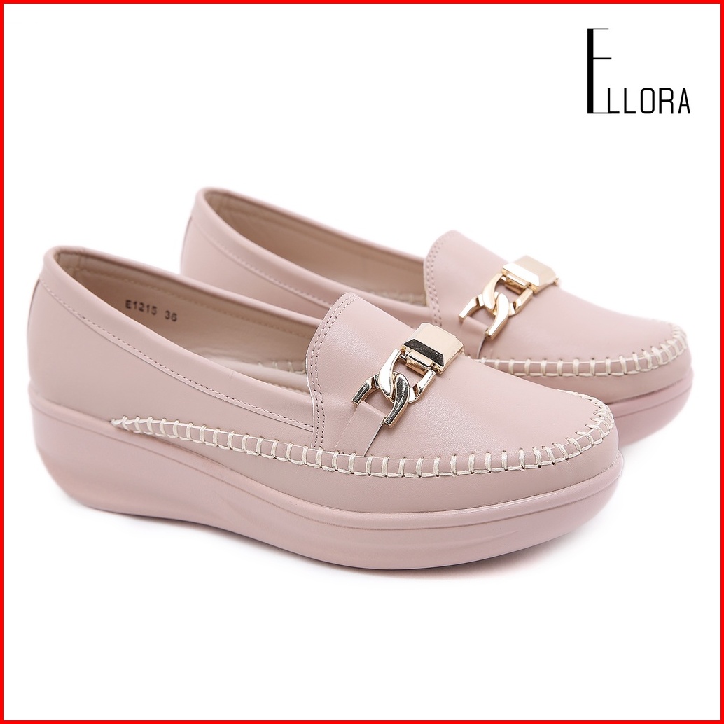 Ellora E1215 Sepatu Wedges Wanita Import Kulit 5cm