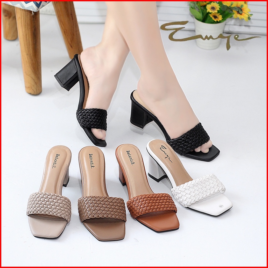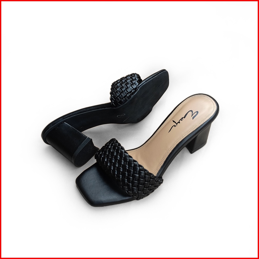 Emye - Sandal Heels Wanita Anyam Kepang Rajut 7 5cm