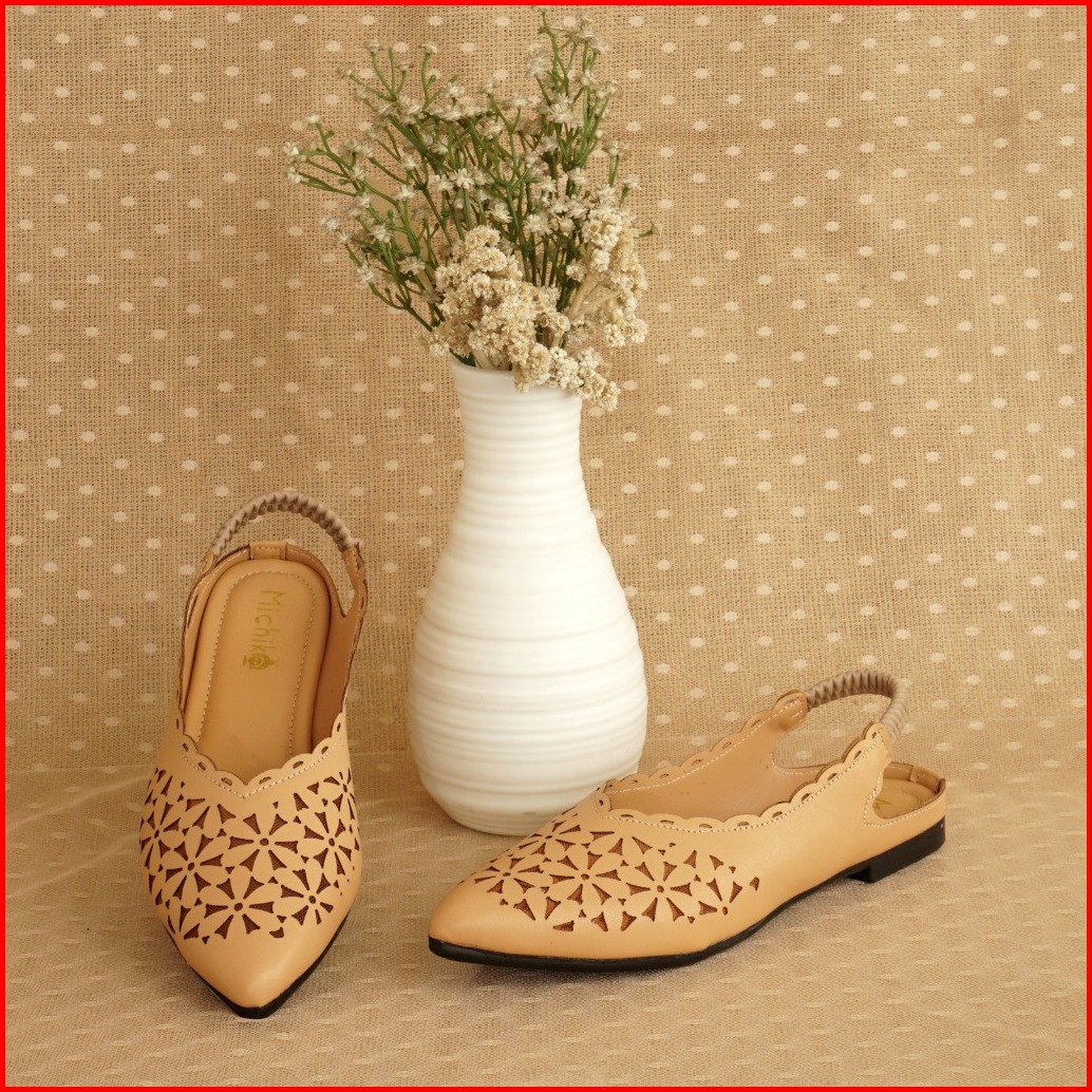Sepatu Flatshoes Slop-on Wanita Motif Bunga