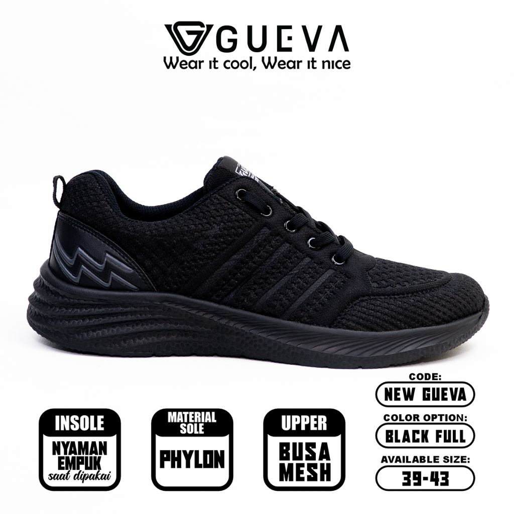 GUEVA 062 SEPATU SEKOLAH HITAM POLOS SMP SMA SMK KULIAH LARI HITAM JOGGING RUNNING MURAH SIZE 36-43