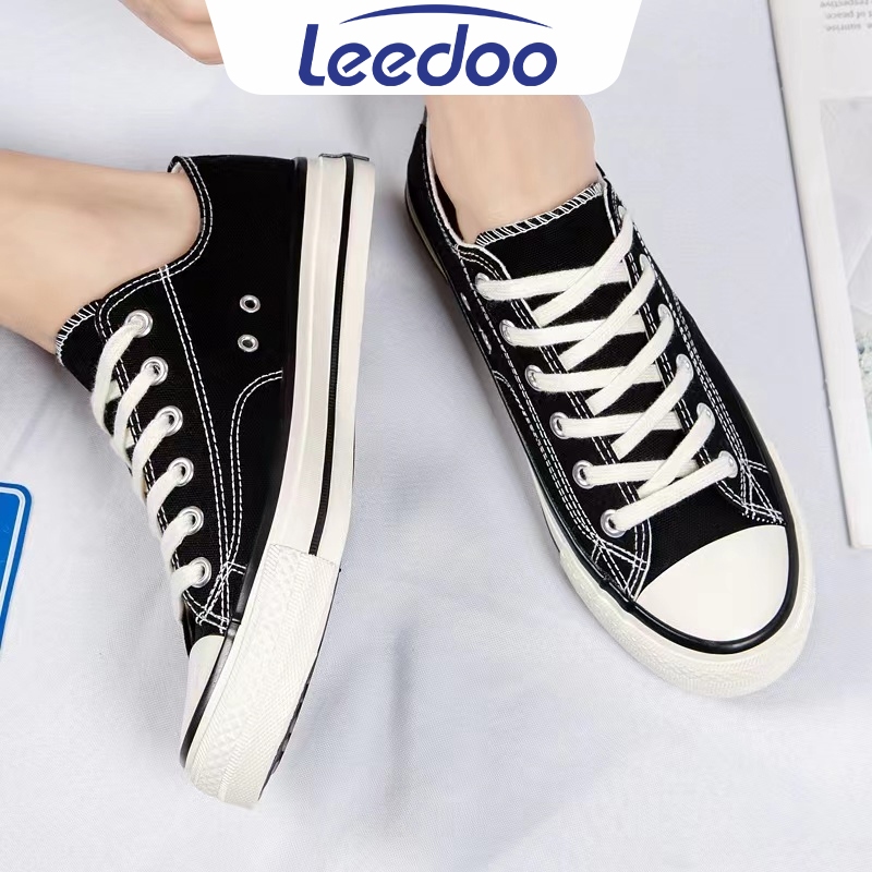 LEEDOO SEPATU SEKOLAH PRIA ORIGINAL MUDA CASUAL KAIN KANVAS SHOES LOW HITAM NATURAL MC303