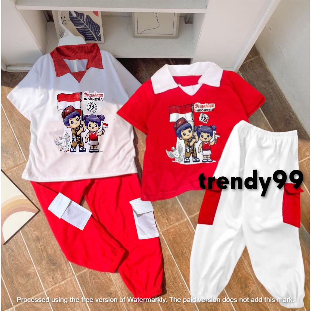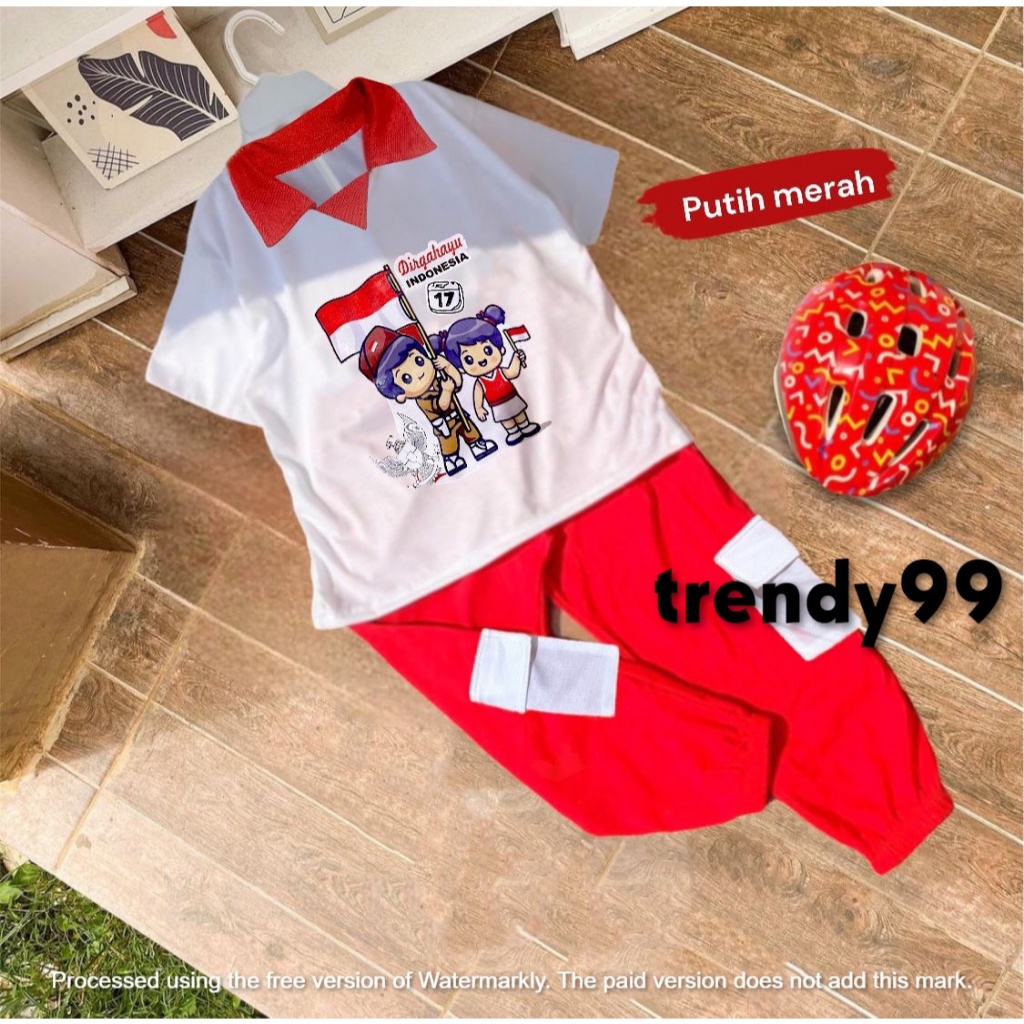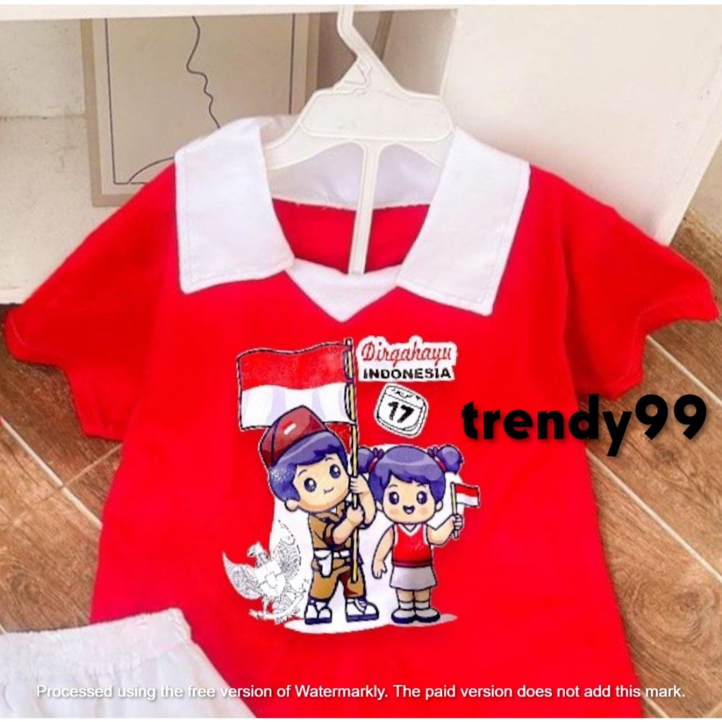 [Star] baju karnaval anak Setelan Baju Merah Putih Kaos Kerah Kemerdekaan 17 Agustus untuk Anka Laki Laki dan Perempuan