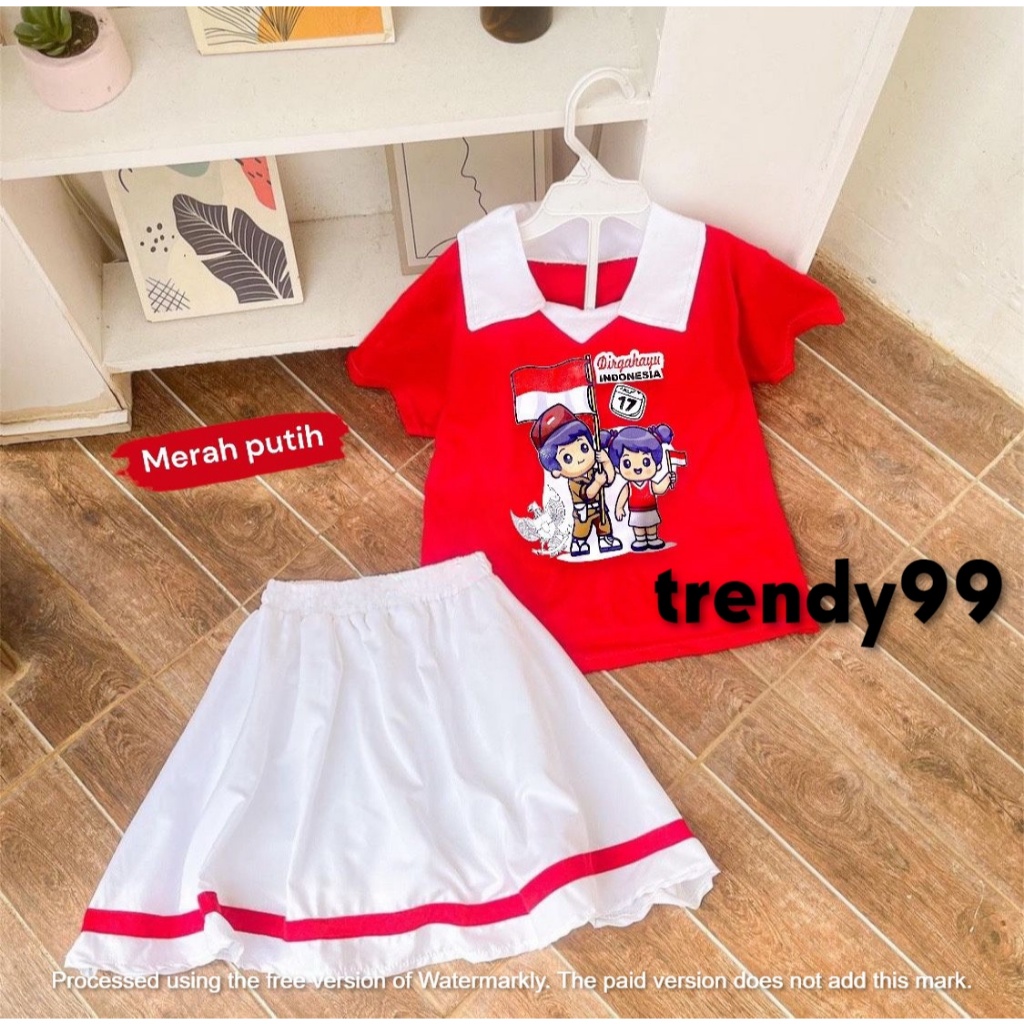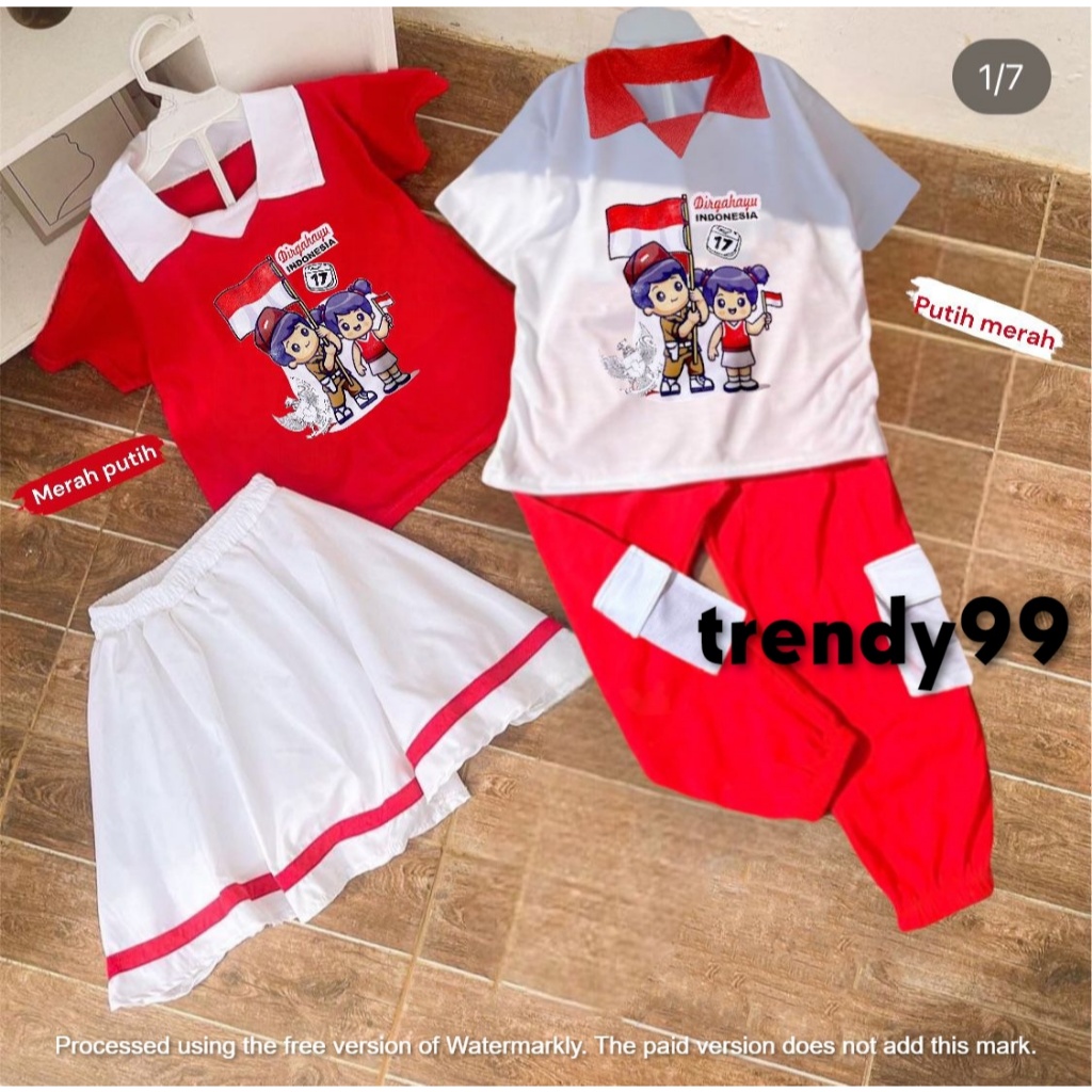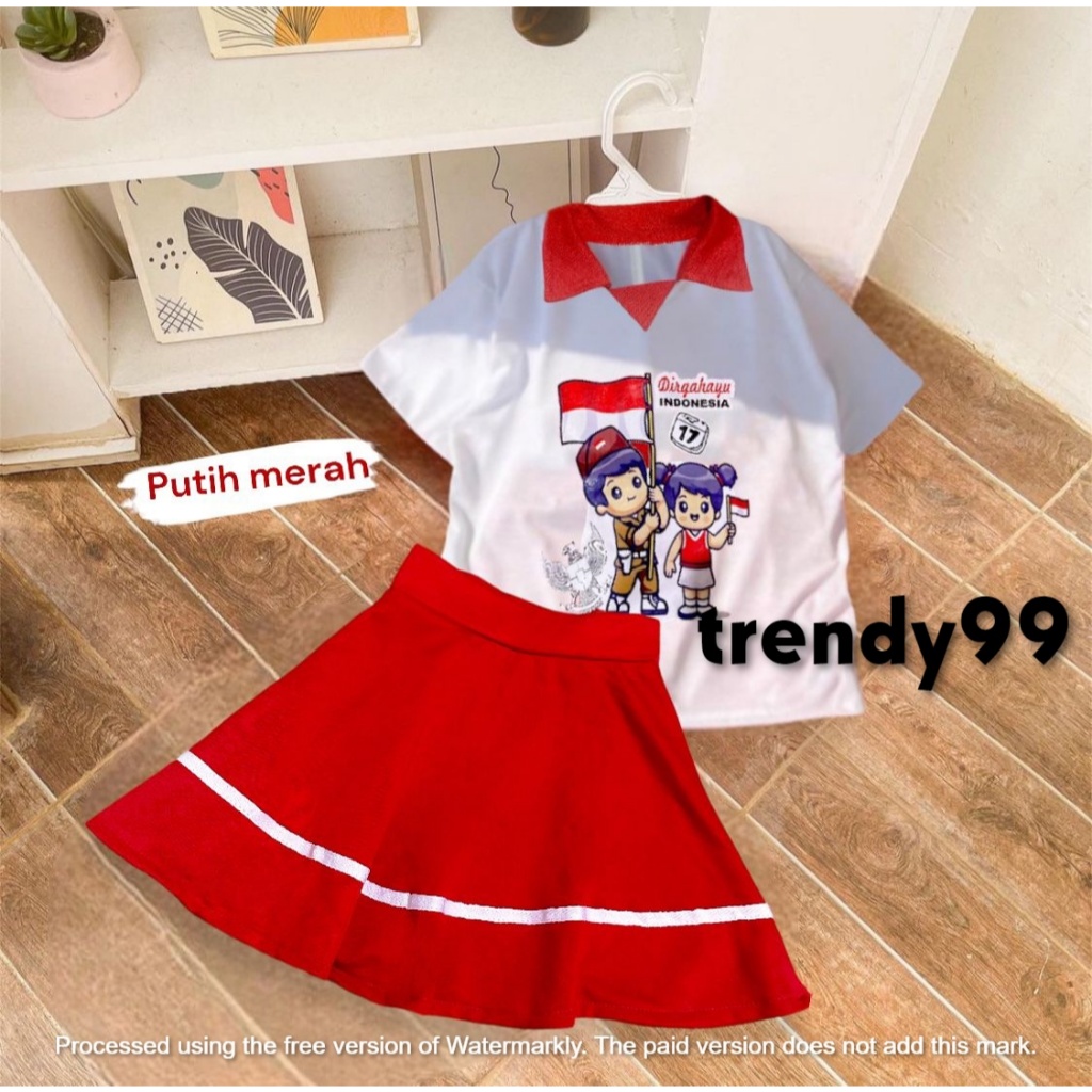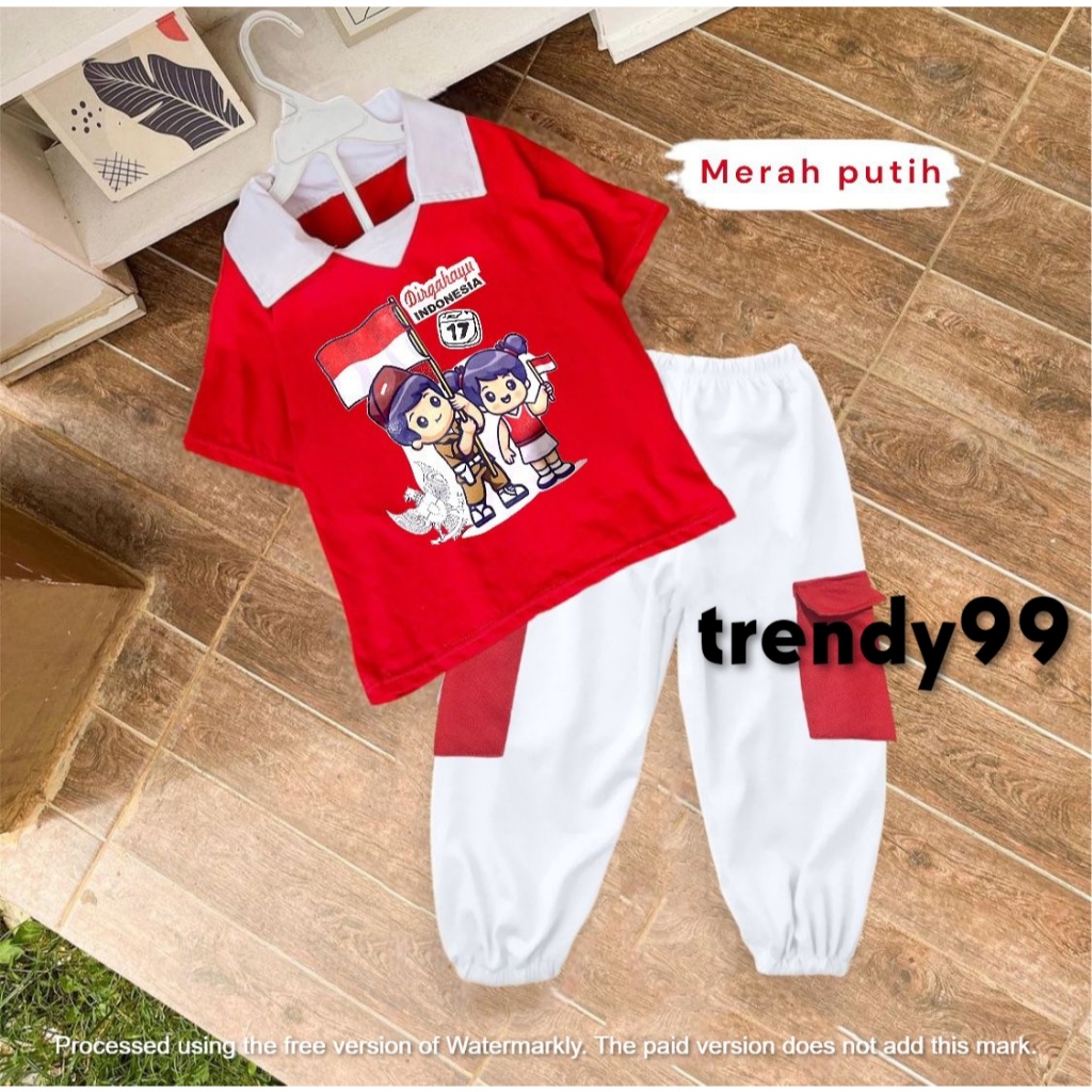 [Star] baju karnaval anak Setelan Baju Merah Putih Kaos Kerah Kemerdekaan 17 Agustus untuk Anka Laki Laki dan Perempuan