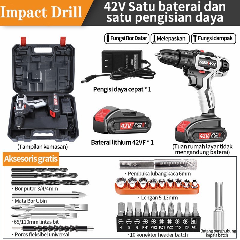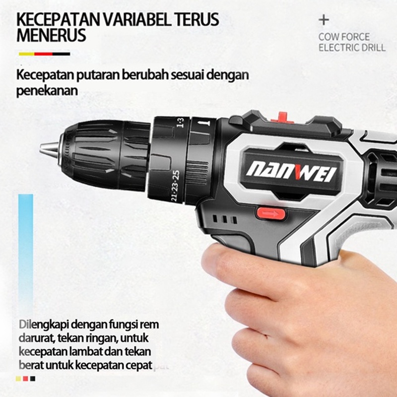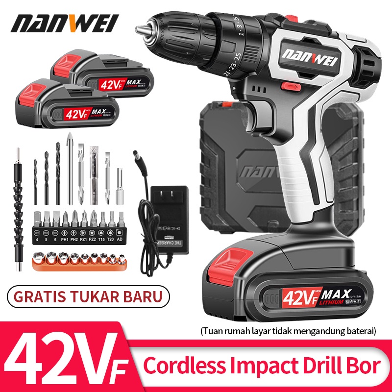 NANWEI Mesin Bor Listrik 1 Set Lengkap Impact Ori Cordless Multifungsi 13mm Makita Apr Bosch Jumbo Baterai