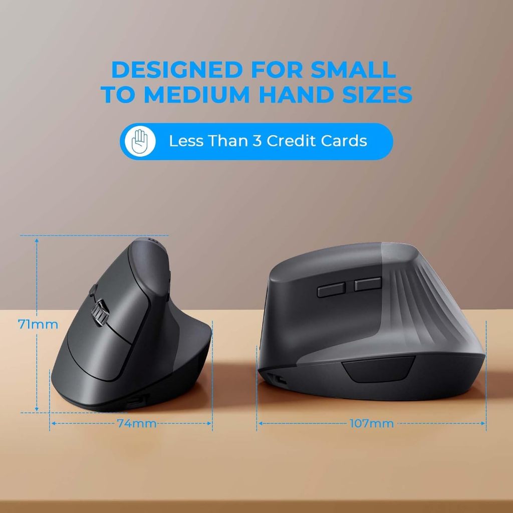 SEENDA Mouse Ergonomic Vertical MOE300 Wireless Silent Click Rechargeable - Black for Laptop Komputer Mac OS 2.4G with a