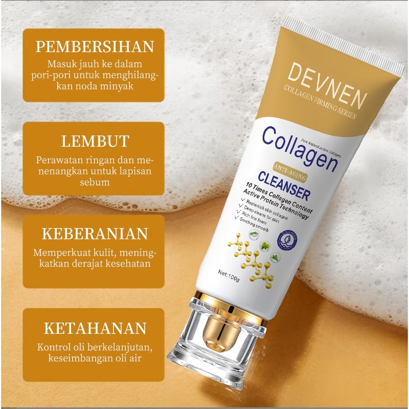DEVNEN Collagen Brightening Facial Wash 100g Pembersih Wajah Jerawat Pemutih Wajah Tungau Pembersih Dan Komedo Kontrol M