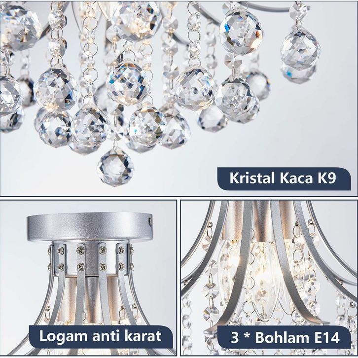 (TERMURAH)Lampu Kristal Mewah Modern Chandelie Lampu Hias Kristal Unik Lampu Gantung Kristal - Emas/Perak