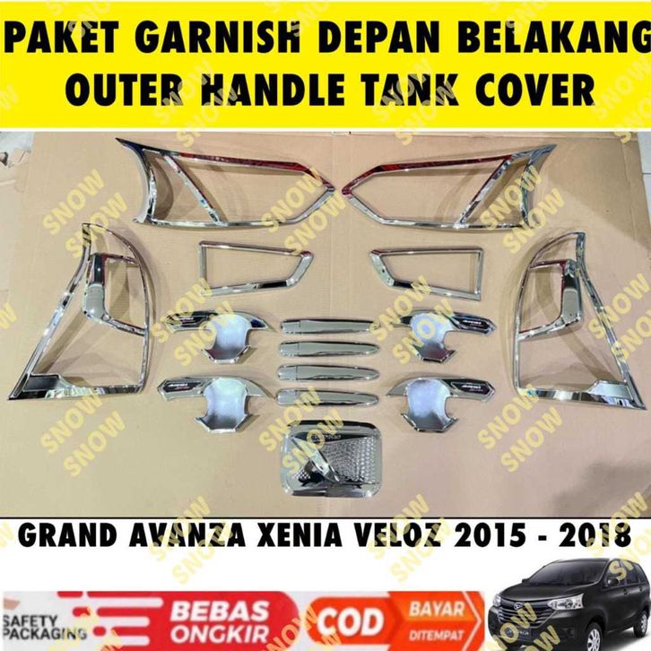Paket Garnish Depan Belakang Outer Handle Tank Cover Grand All New Avanza Xenia Veloz 2015 2016 2017 2018 Hitam Chrome