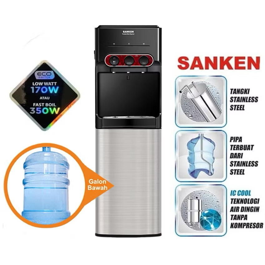 Sanken Dispenser Galon Bawah HWD 535IC/HWD 555 3 Kran Panas dingin normal