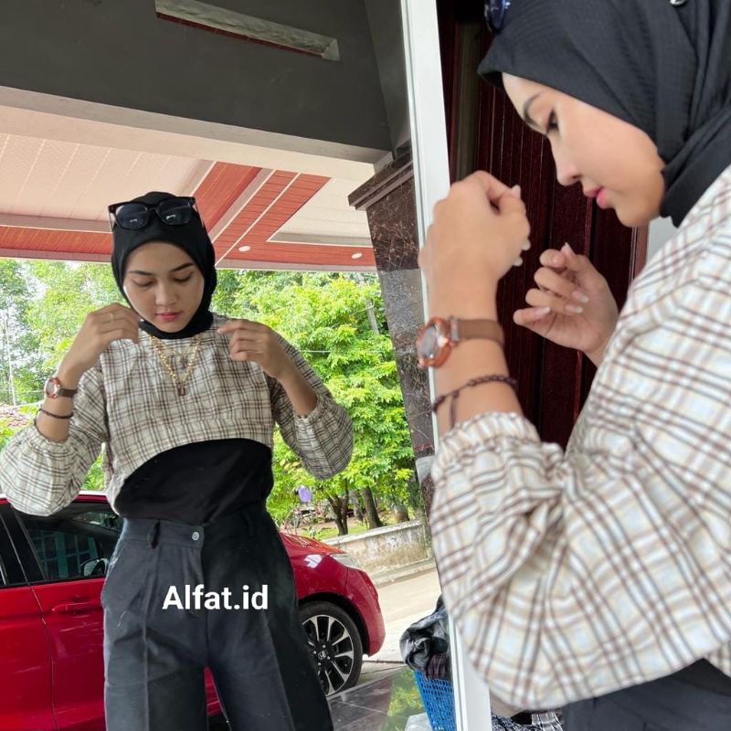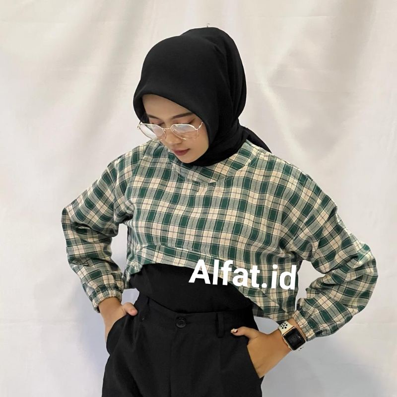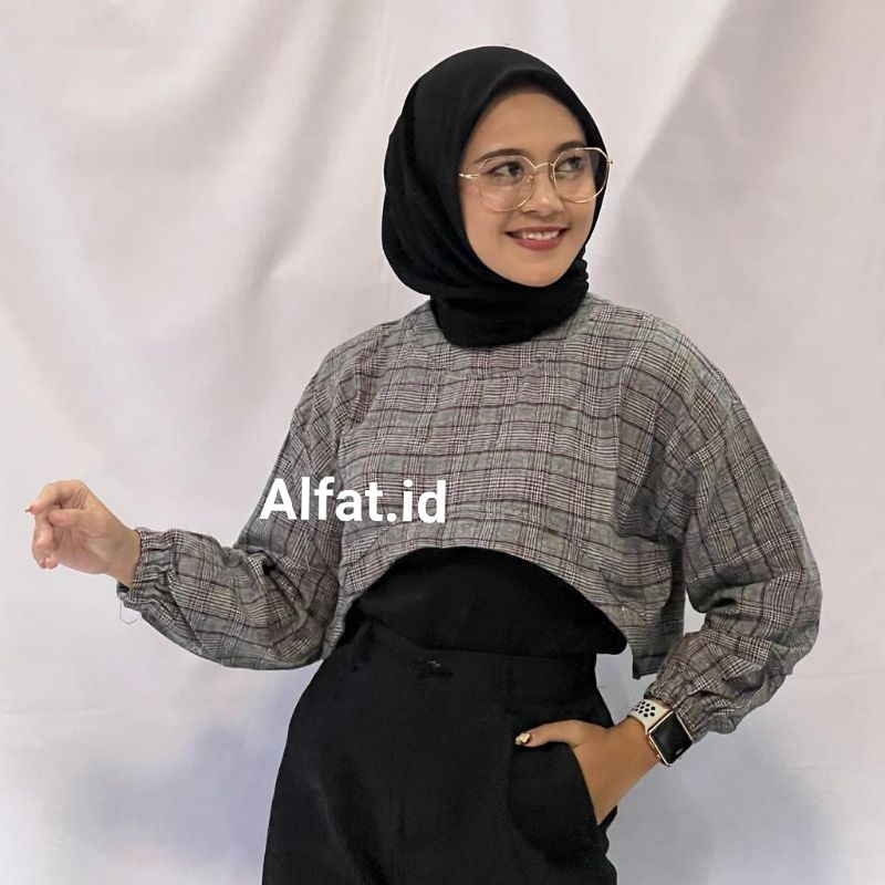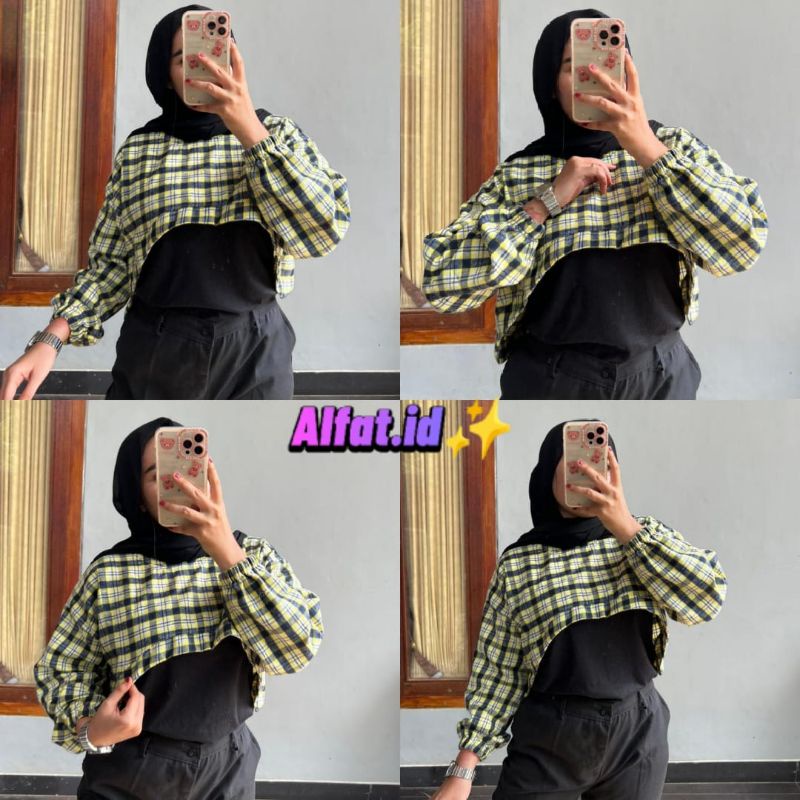 BECHARA TOP CROP KOREAN TARTAN OVERSIZE || OUTER FLANEL ini