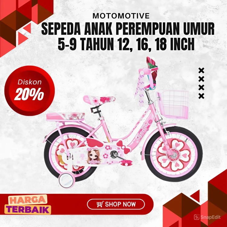 [Star] Sepeda Anak Roda 3 Perempuan 16 18 Inc Usia 3 - 9 Tahun SNI NEW Sepeda Mini Anak Perempuan
