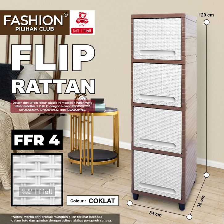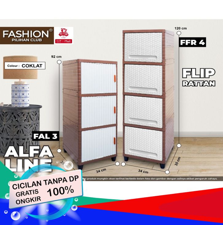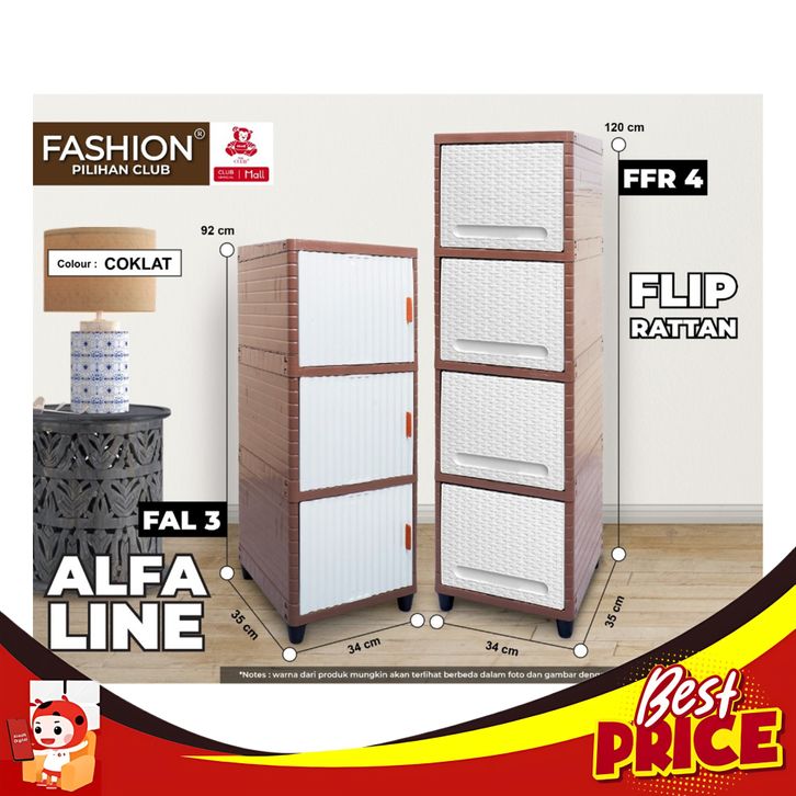 CLUB Plastik FASHION Single Susun 2 3 4 5 - Lemari Plastik Serbaguna 1 Pintu Alfa Line Rattan
