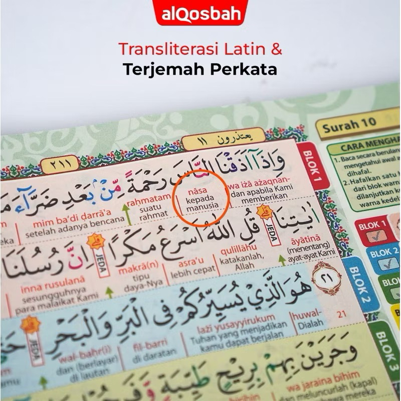 Al-Qur'an Hafazan Perkata LATIN A5 Terjemahan Tajwid Warna Alqosbah