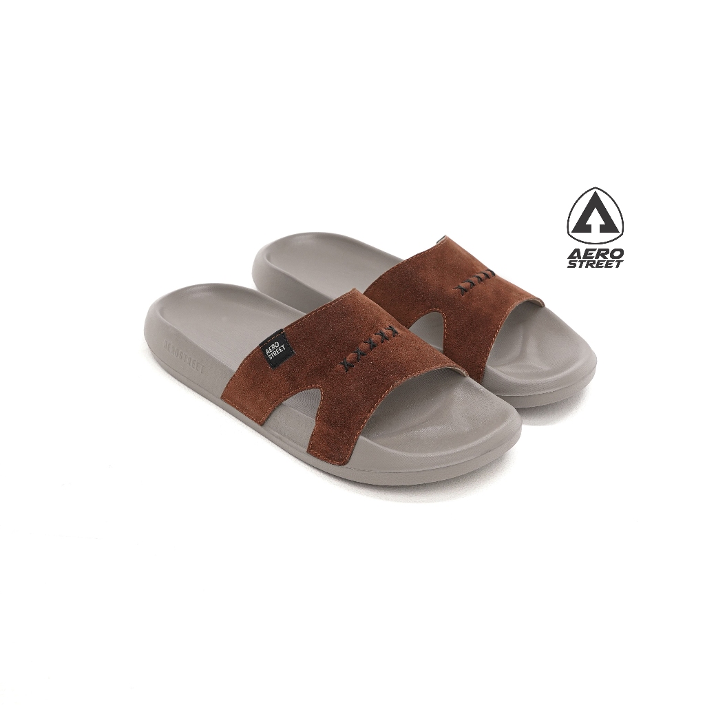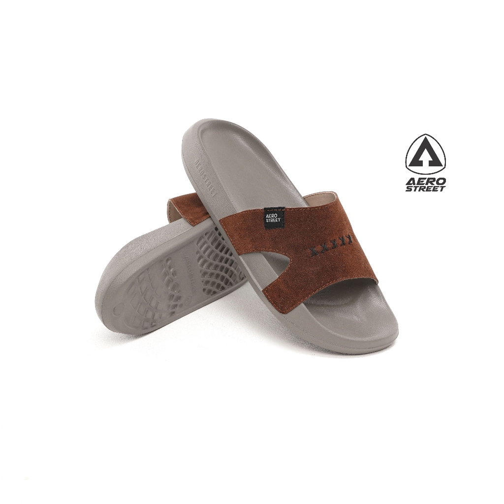 Sandal Aerostreet Original Store 39-44 Xavier Khaki Coklat Selop Slip On Pria Wanita Dewasa - Aero Street Official Store