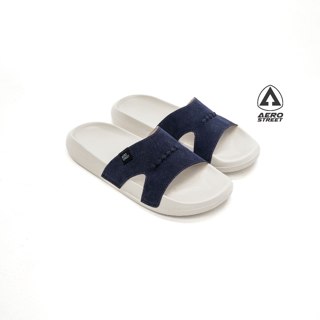 Sandal Aerostreet Original Store 39-44 Xavier Off White Navy Selop Slip On Pria Wanita Dewasa - Aero Street Official