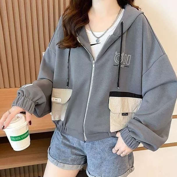 ON OCEAN RING ZIPER TWO POCKET HOODIE JACKET OUTERWEAR OVERSIZED REMAJA WANITA KOREAN STYLE PREMIUM