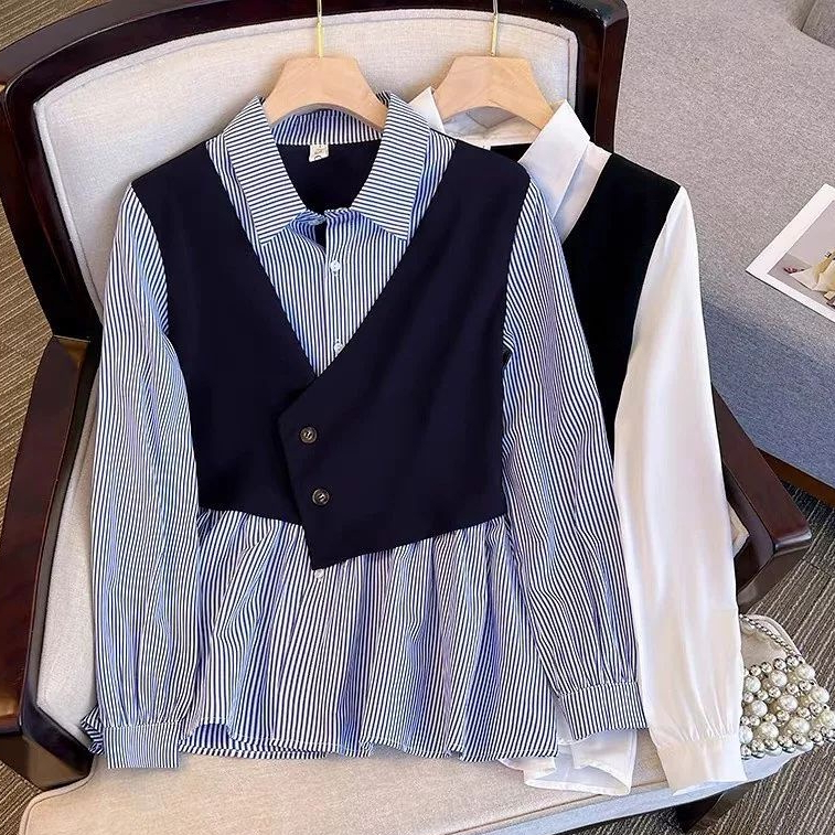 OUTFIT ELIANA T0P BLOUSE HEM VEST PLAINED STRIPE ATASAN KEMEJA WANITA REMAJA
