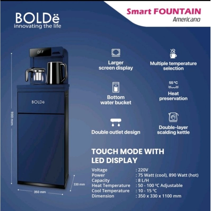 [Star] Dispenser Panas dinging BOLDE Hot & Cool Dispenser Galon Bawah Led Gratis Panci pemanas otomatis DIspenser Remot