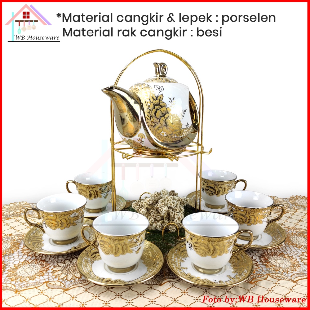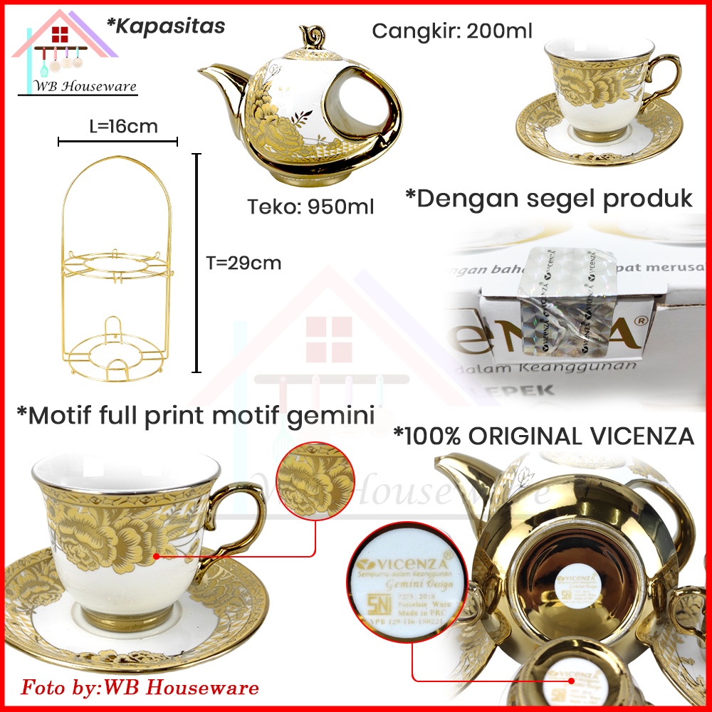 Vicenza Teko Set Gelas Motif Perangkat Tea Set Porcelain Motif Gemini CR-90 Cangkit Set + Teko Gelas Teh Kopi + Tatakan