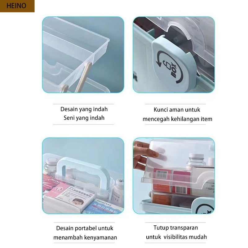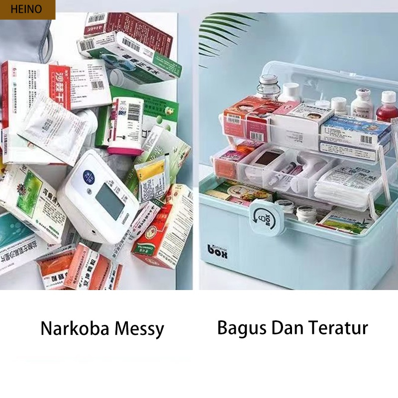 HEINO TEMPAT KOTAK PENYIMPANAN BOX MAINAN KOTAK PENYIMPANAN MULTI-FUNGSI KOTAK OBAT TOOL BOX KOTAK OBAT TEMPAT PENYIMPANAN P3K FIRST AID MEDICINE ORGANIZER