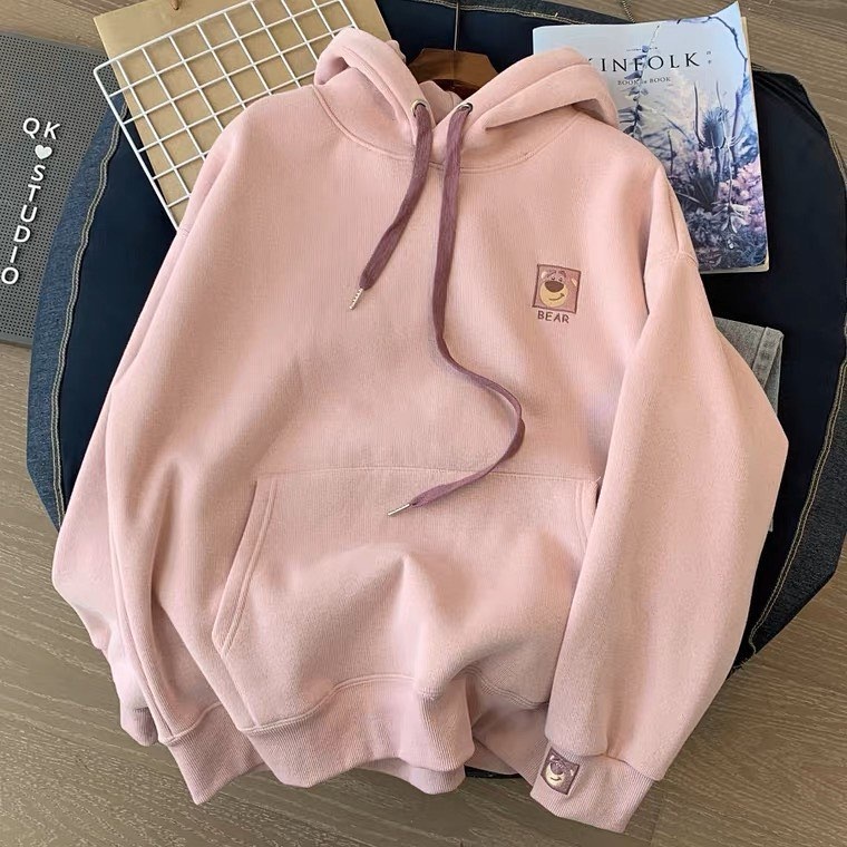 LOTSO BEAR BORDIER HOODIE SWEATER OUTERWEAR BASIC WANITA KOREAN STYLE PREMIUM