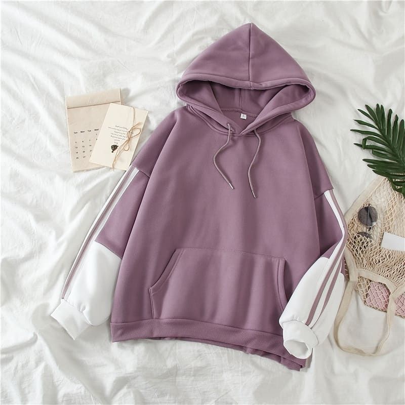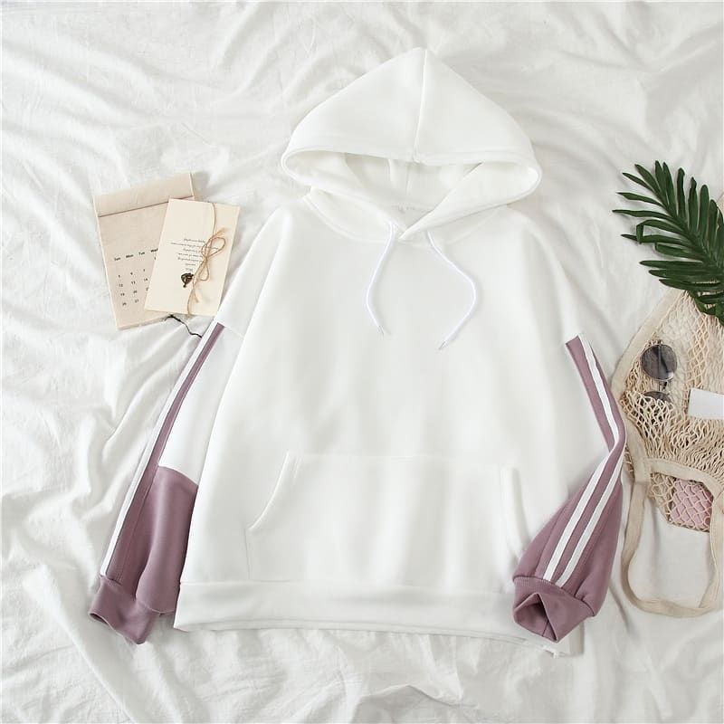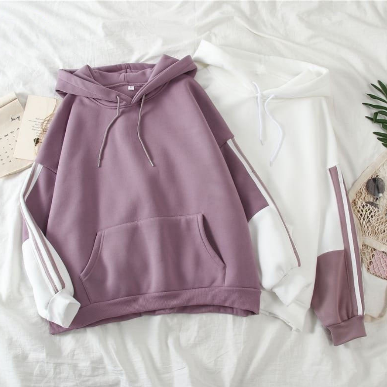 ZIPPY STRIPE HOODIE PULLOVER PREMIUM SWEAT FLEECE TEBAL SWEATER WANITA KOREAN STYLE