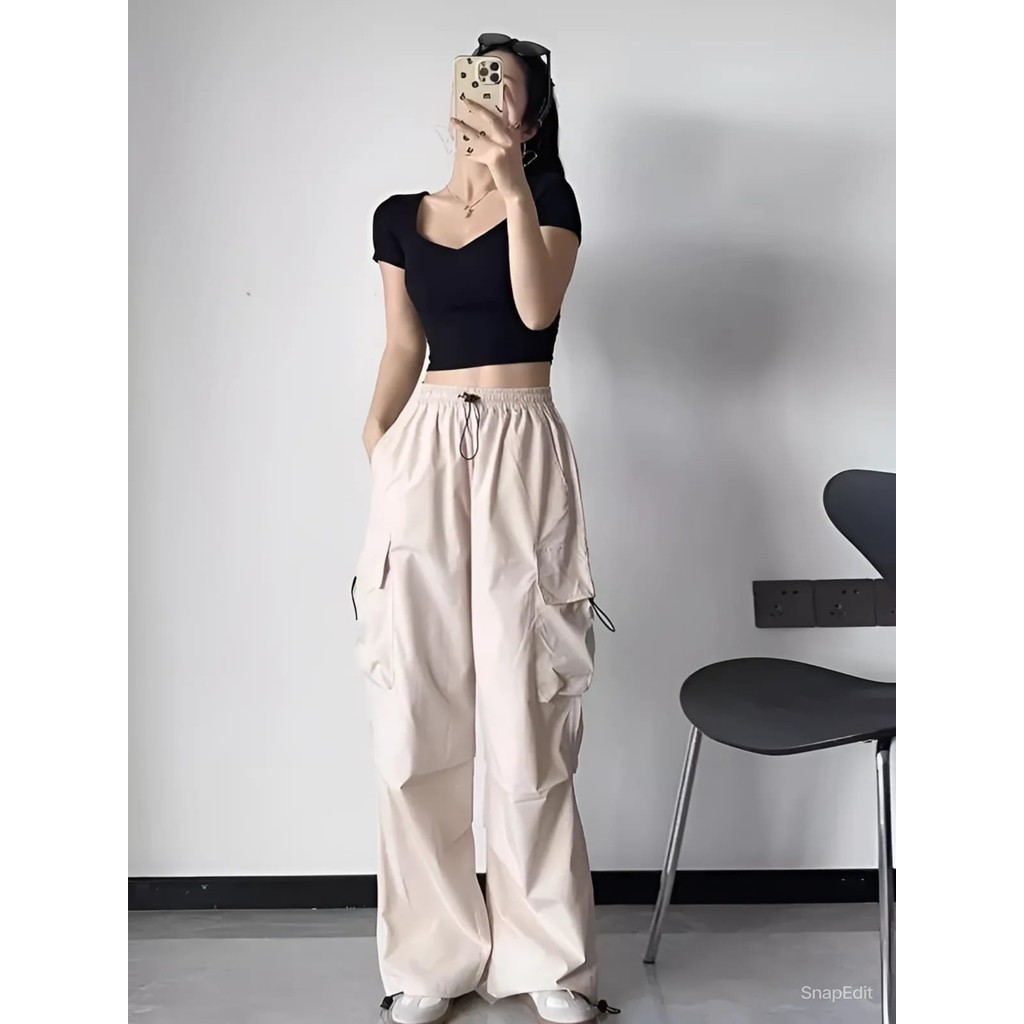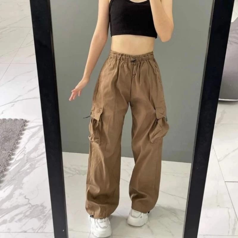 OUTFIT KIYA CARGO PANTS WANITA HIGHWAIST LOOSE KOREAN STYLE JUMBO CELANA KARGO WANITA TERBARU