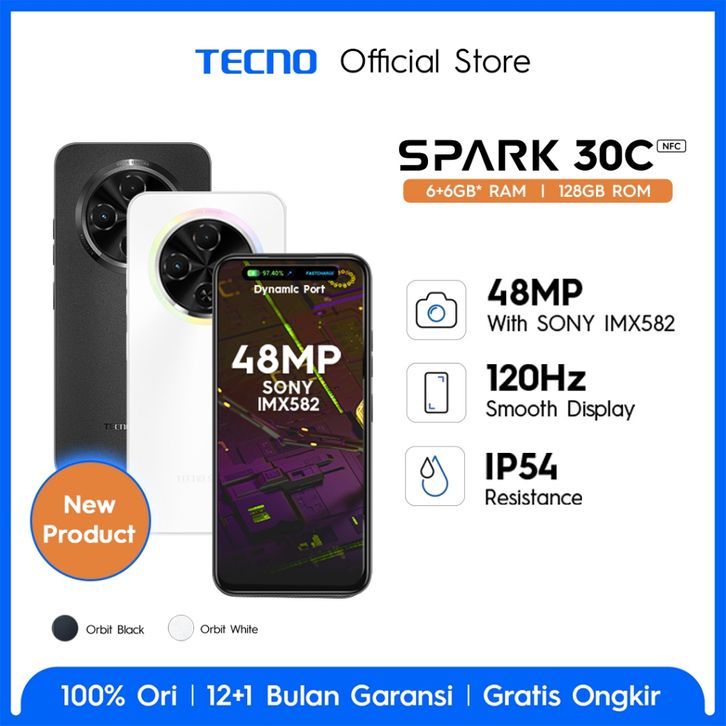 TECNO SPARK 30C 6GB+6GB*+128 Sony 48MP Camera 5000mAh NFC HP Murah 1 Jutaan Cuci Gudang Tanpa DP 0 Tekno 30 Non Pro Plus