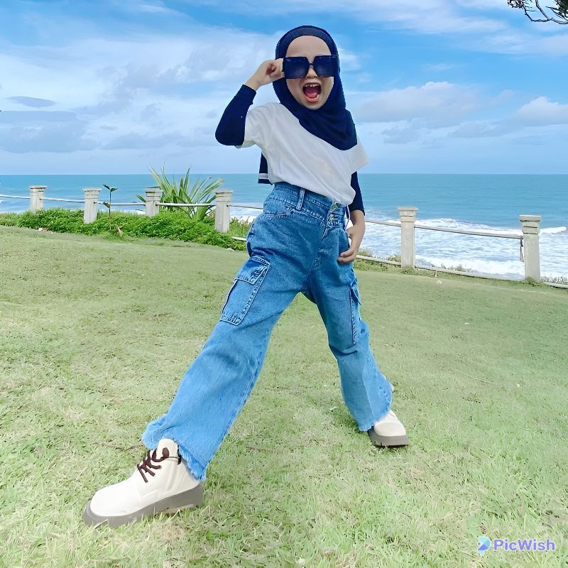 Celana Panjang Cutbray Cargo Jeans Anak Perempuan 2-7 Tahun
