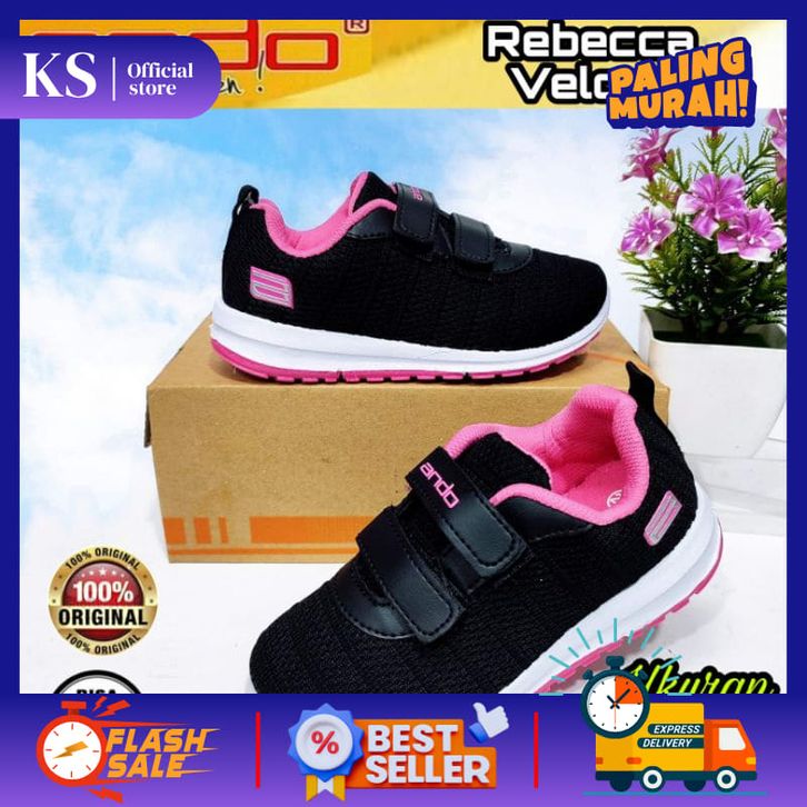 Sepatu Sekolah Anak Perempuan ANDO Sepatu Sekolah Anak Perempuan Cewek Kecil Hitam Pink Rebecca Original Perekat Size