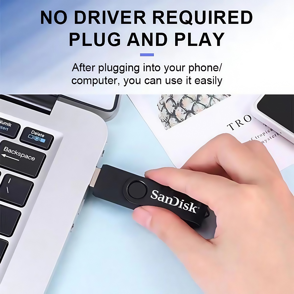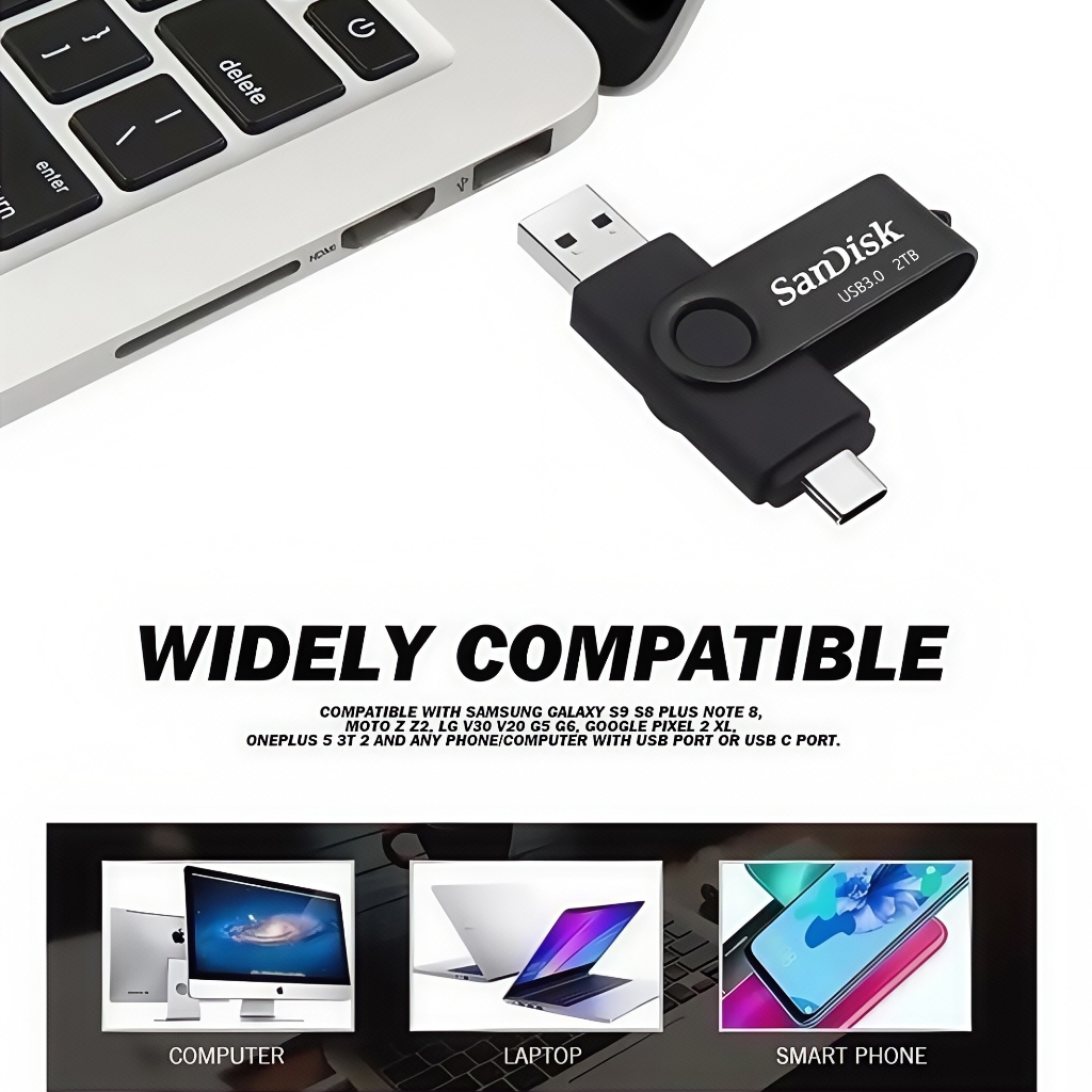SanDisk Flashdisk OTG Dual Drive USB3.0+Type C 1TB/2TB USB Flash Drive untuk Android/PC/Laptop/Audio