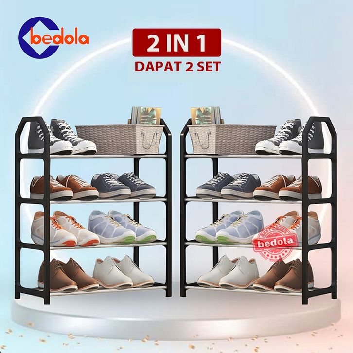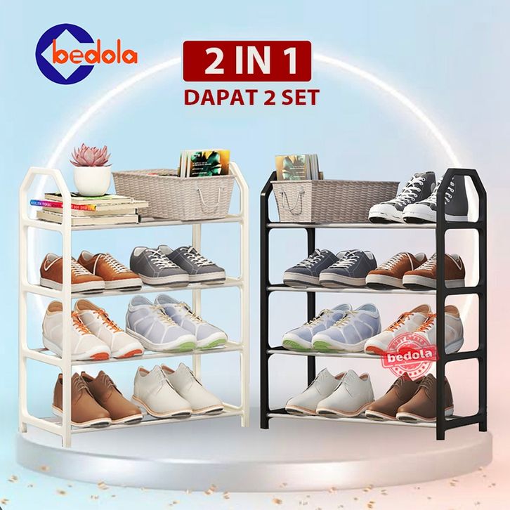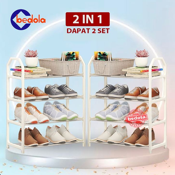 Paket Combo 2 in 1 dapat 2 set rak sepatu susun rak sandal 4 tingkat