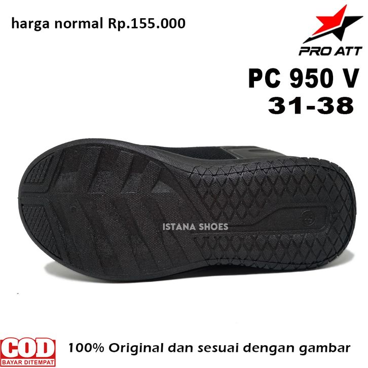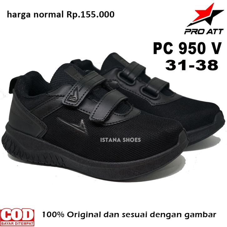 Sepatu Sekolah Anak Laki Laki Perempuan TK SD SMP PRO ATT PC 950 Full Hitam Perekat Sneakers Casual