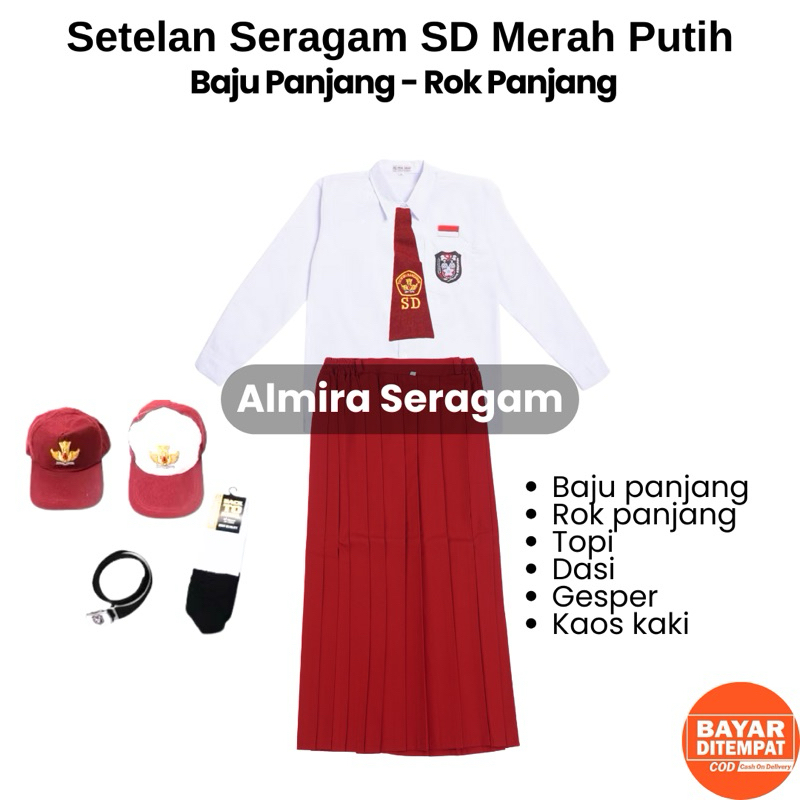 Seragam Sekolah SD Setelan Super Lengkap Kemeja Baju Panjang Rok Panjang Cewek Perempuan