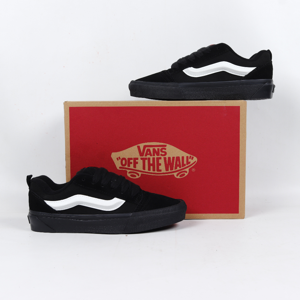 Vans Official Store - Sepatu Vans Knu Skool Black Black White - Vans Original - Sepatu Pria Casual - Sekolah - Authentic