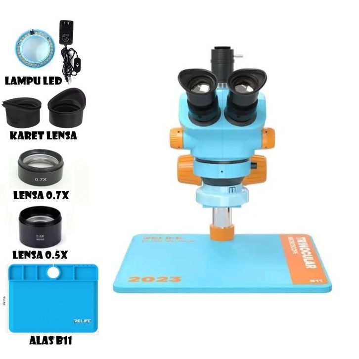 MICROSCOPE TRINOKULAR RELIFE RL-M5T-B11 / RELIFE M5T-B11 BLUE ZOOM 0.7-5X PLUS LAMPU LED