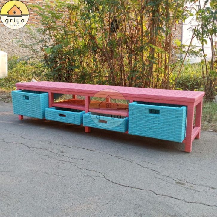 LEMARI ROTAN PLASTIK Sintetis 4 Laci Lemari Plastik Meja Tv Minimalis Rak Susun Murah