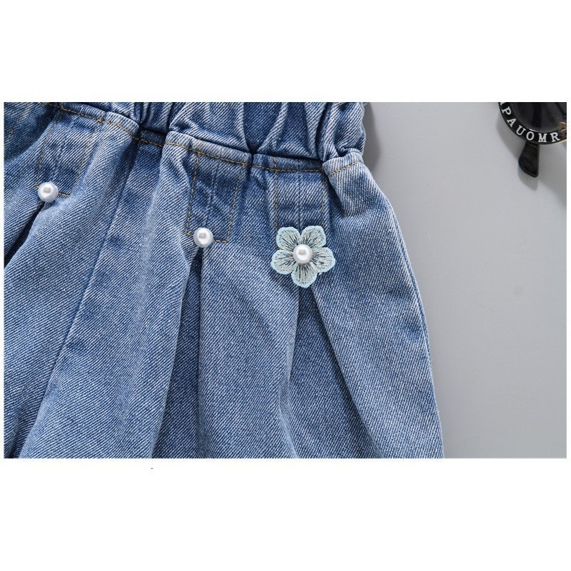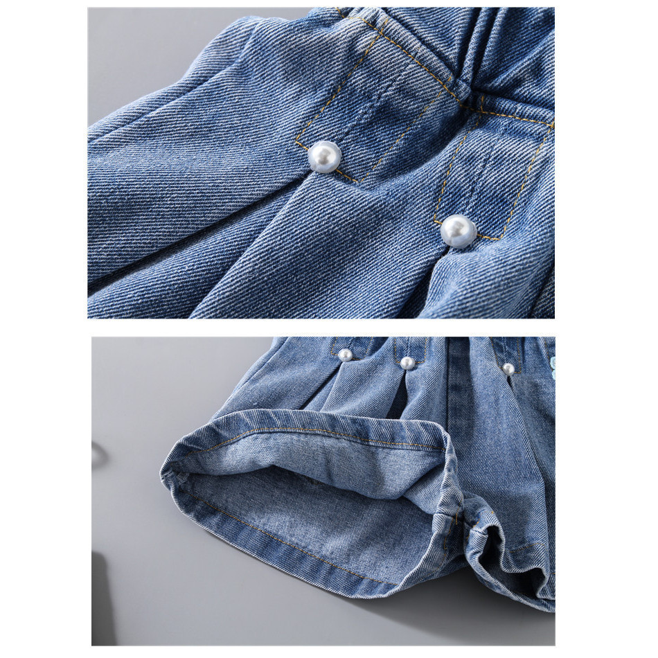 CELANA PENDEK JEANS ANAK PEREMPUAN BISA MELAR DENGAN AKSESORIS LUCU