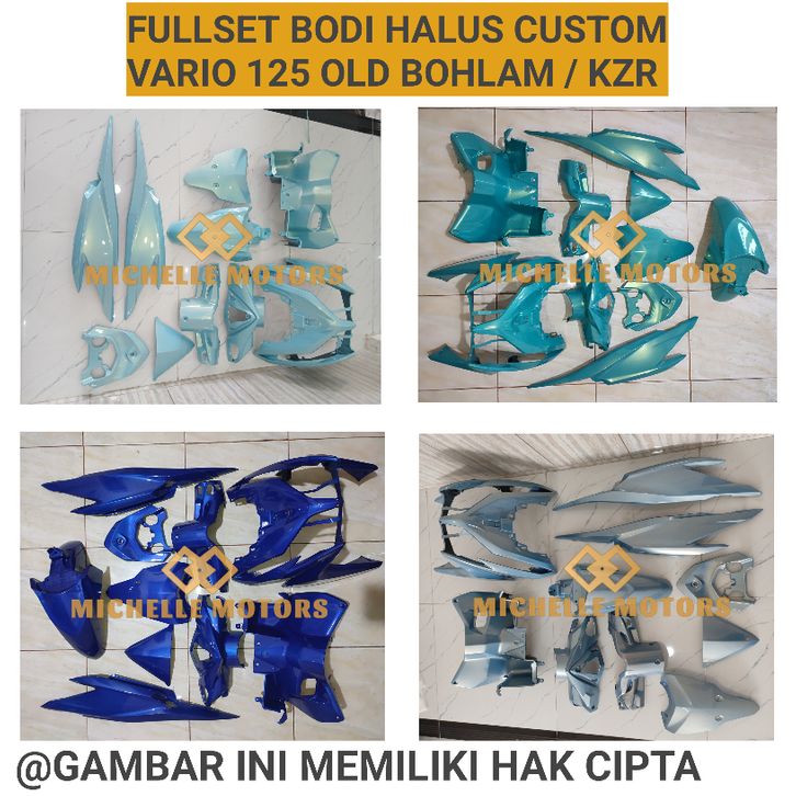 Alien green, Amazing blue guled, Biru candy, Biru relaxa, Dark blue, Dark grey, Dark red, Dolphin blue guled, Hijau botol, Hijau cendol, Hitam, Lamaru blue guled, Merah, Merah candy, Monlight aqua green, Monlight blue, Monlight blue V1, Monlight purple, Monlight red, Monlight red xeralik, Moonlight green, Nardo grey, Nardo lembayung biru, Oren, Pink Rose Efect guled, Pink candy, Pink kitty, Putih, Putih L biru, Putih Lmbyng guled, Putih lembayung ungu, Req pakai behel, Req spkbor vario new, Req warna solid, Req wrn+bhel+spk new, Req wrna sold+lmbyng, Silver