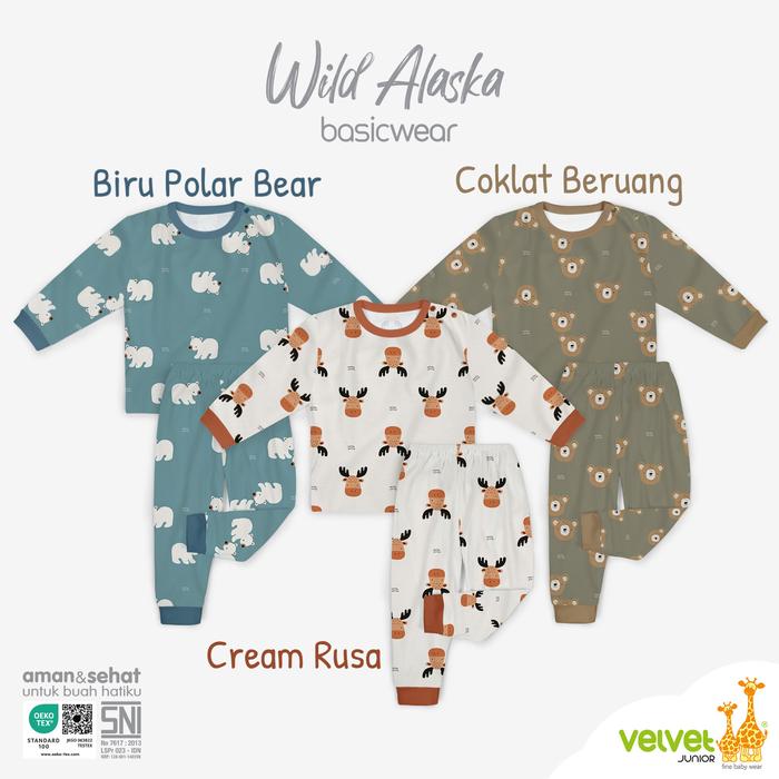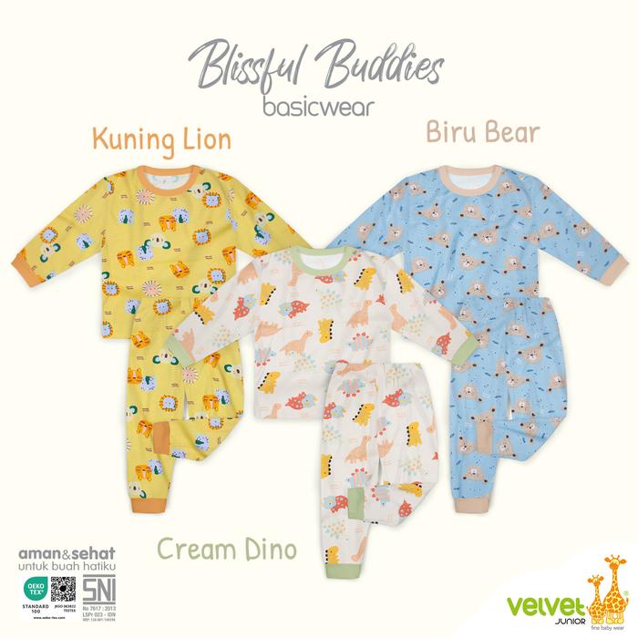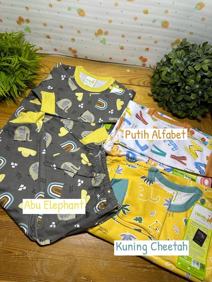 Terlaris Velvet Junior - Size S - Stelan Oblong Lengan Panjang Celana Panjang - Biru Kucing Promo