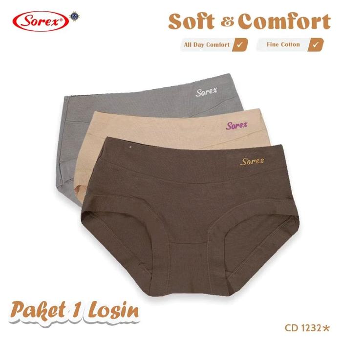 6PCS_ CELANA DALAM SOREX 1232 & CD SOREX 1228 WANITA DEWASA | CD SOREX WANITA MIDI KATUN - 3PCS_CD SOREX 1232, M