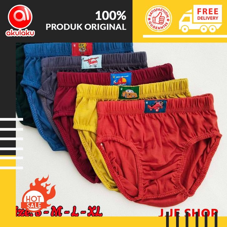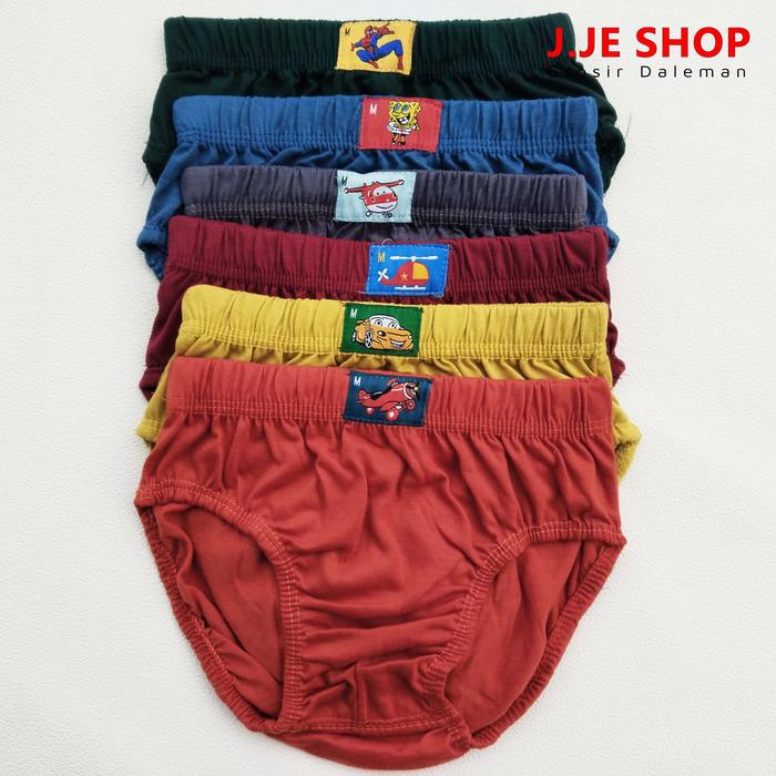 12PCS CD ANAK COWOK CELANA DALAM LAKI LAKI POLOS LABEL KARTUN - FASHION PAKAIAN ANAK - 6 PCS MIX WARNA, M